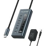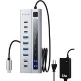 Powered USB C Hub, PULWTOP 9-in-1 USB-Hub suppprt 10Gbps & PD 45W Max Charging(Not Support Video), USB Powered Hub with 3 USB-C, 4 USB-A for Laptop, MacBook, iPad and More (72W Adapter Included)