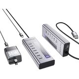 【Blazing-Fast Data Transfer】USB C Powered Hub with 2 x USB-C ports, provide file transfer at speeds up to 10Gbps, and 4 x USB-A 3.0 ports provide file transfer at speeds up to 5Gbps. HD photos, videos and any file transfer can be done in seconds. The USB C hub provides you with fast file transfer from different devices and can meet your multiple needs. NOTE: The 3 USB C 10 Gbps ports and 4 USB-A 3.0 ports only support transfer data, without video and charging.