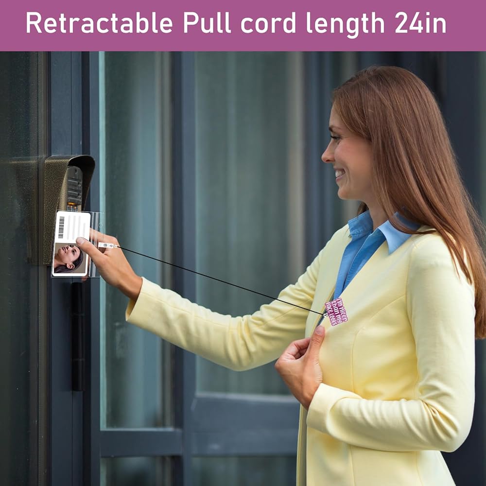 【Retractable】: This nurse name tag holder ensures easy access to your ID or business cards, the retractable cord extends up to 24 inches, making it easy to reach and swipe your card without removing it. Safe and convenient.