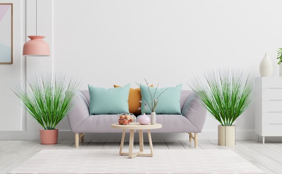 NO MAINTENANCE NEEDED - No need trim, fertilize and watering, this artificial onion grass will always green, it's great for people who have a busy schedule. Enjoy the freshness, this artificial wheat grass is great for living room, bedroom, office, garden, patio, lawn, wedding.