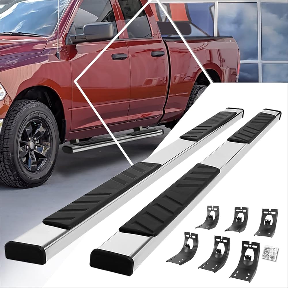 Running boards give your ride a massive boost when it comes to look and utility. Combining the stylish appearance and rugged looks, these inventive running boards are the ideal way to upgrade your truck or SUV. Constructed from high quality grade aluminum frames, you can be sure this running board will withstand the roughest of weather conditions as well as the test of time. They are built tough and are highly corrosion resistant. Getting in and out of your vehicle is easy with the large non-skid molded pads that ensure secure footing. No drill installation! These running boards are very easy to install with the brackets fitting right into the existing factory holes. By not having to not drill in to your vehicle, your time and effort is saved by you.