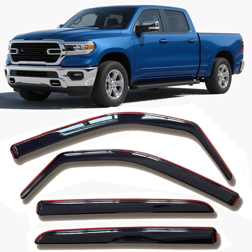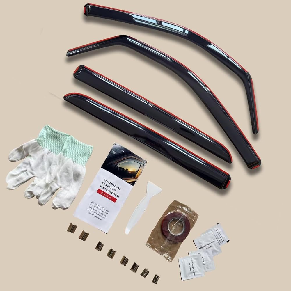 ✅【Package Content】4 pcs Window visors with double-sided adhesive tape. Color: Dark Smoke Tinted. Type: Outside mount.