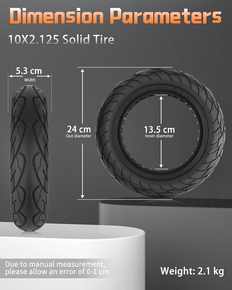 Installation Instructions: For easy installation, we provide each customer an installation video. All you need to do is to put the tire into hot water and use the principle of thermal expansion and contraction to complete the installation. (Please make sure the size you need is 10x2.125 inches before purchasing).