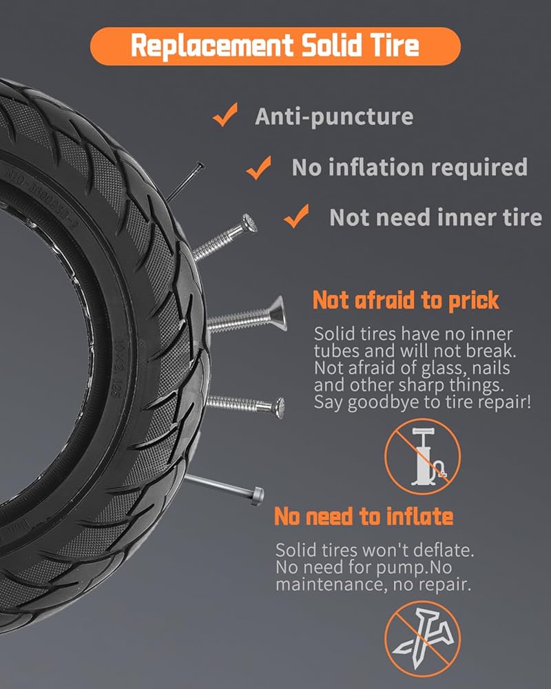 Hassle-free Maintenance:No need to worry about puncture and no need to worry about tire pressure.