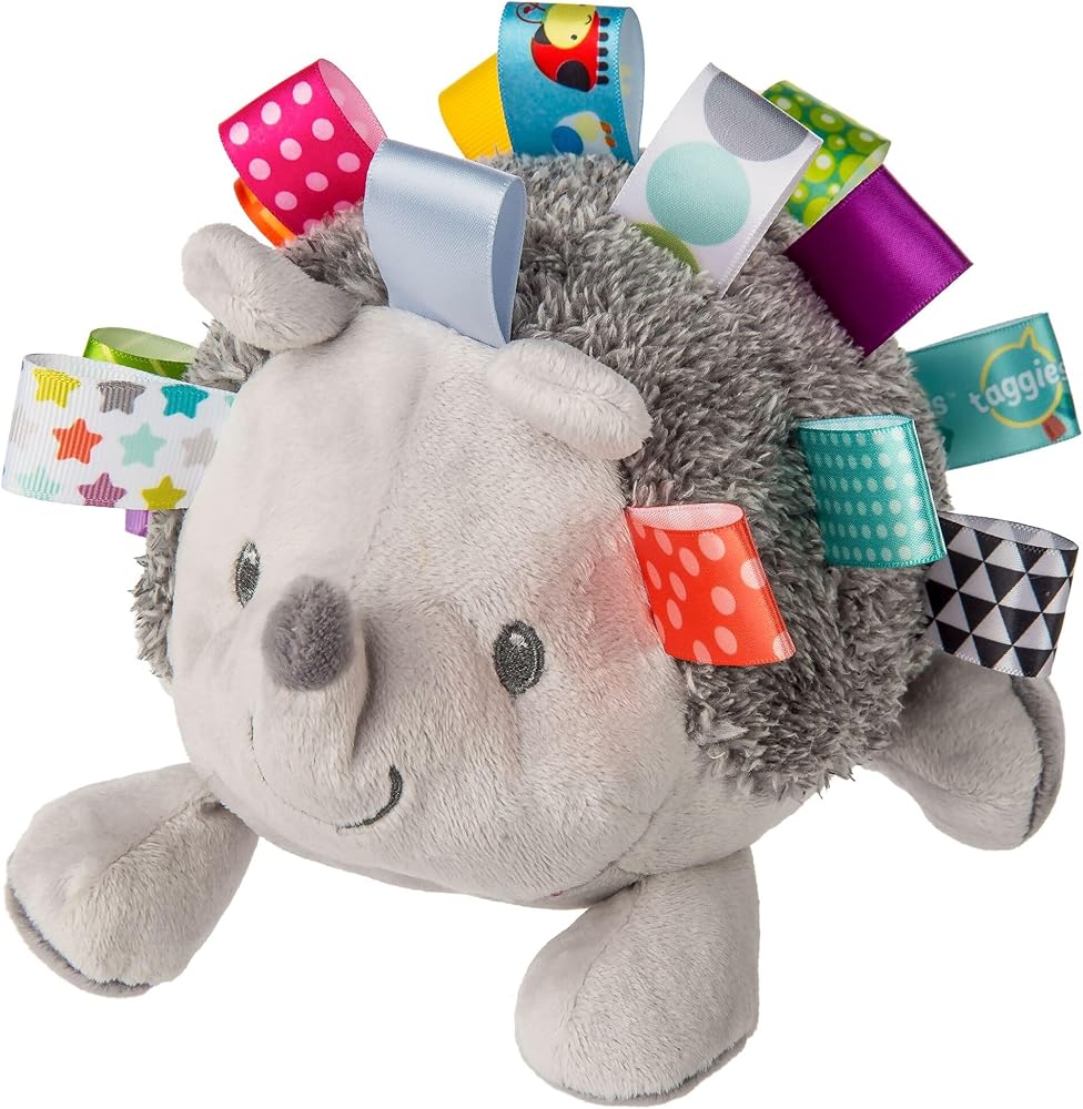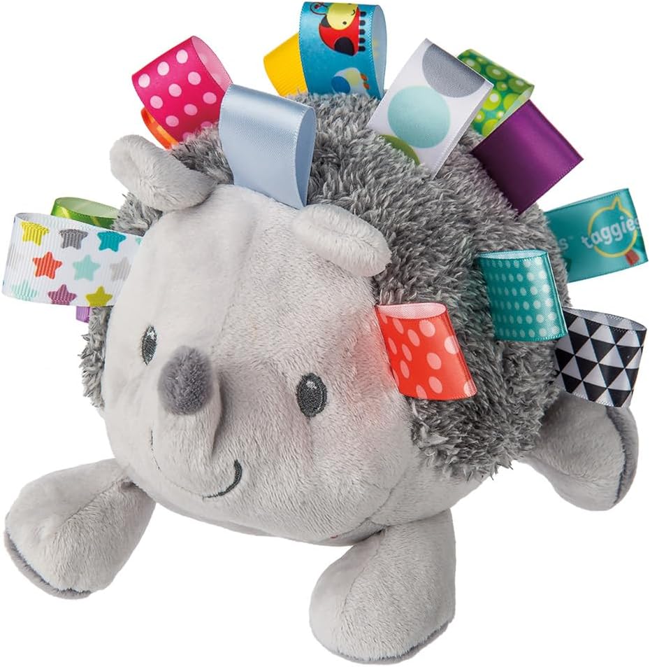 This soft toy hedgehog has satin loops instead of spikes. Fun for little hands to hold, this cutie has stitched eyes and smile and a charming, perky nose. Give Heather a good squeeze and she lets out a squeak that'll make you and baby smile. Taggies was born over a decade ago when a mom noticed her child's fascination with satin tags. This idea blossomed into a world of treasured products. Exploring Taggies textured tags can provide tactile stimulation that babies crave for development and have an amazing calming effect on little ones. Taggies Signature Collection is recognized as the premium line of wonderfully soft and soothing Taggies toys made by Mary Meyer. At Mary Meyer, we continually strive to design extraordinary products of outstanding quality, all the while keeping an eye on customer service and value.