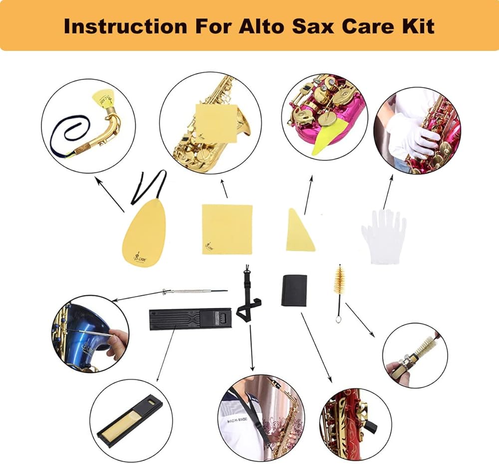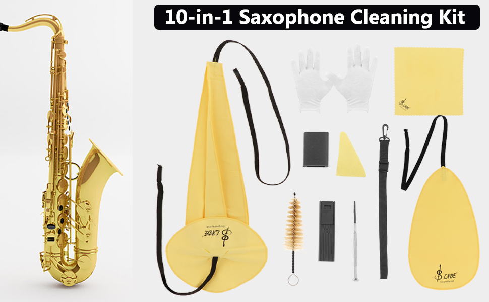 10-in-1 Saxophone Cleaning Kit: Comes with a necking cleaning swab, neck strap, cleaning cloth,mouthpiece brush, dust brush, gloves and mini screwdriver. This cleaning kit will clean every part of saxophone. Everything you need great to maintain your saxophone.