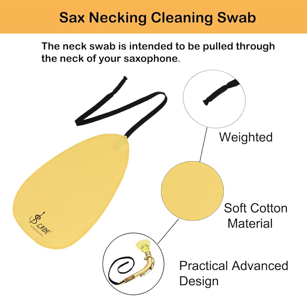 Saxophone Necking Swab Cloth: Made of high quality cotton material and weighted A-shaped design, easy to operate and suitable for small areas of the instrument. Simply enter the body of the tube through the string at one end to clean the inner tube of moisture and oil.