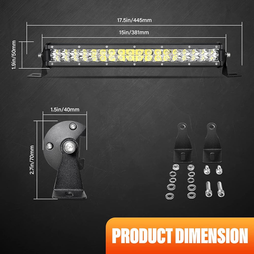 Highlight & Spotlight: Spot flood combo beam LED bar features dual row 216W and advanced LED chips design, which increases the lumen output by 30%-40%. 6000~7000K LED floodlight bar provides you with long irradiation distance and broad view area.