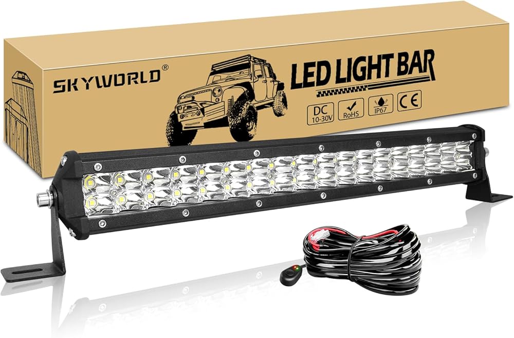 SKYWORLD 15Inch 108W Dual Row LED Work Light Bar 10800LM Spot Beam Fog Lights 6000K Offroad Driving Lamp for Trucks Car ATV SUV 4X4 4WD with Off Road Wiring Harness LED Bar