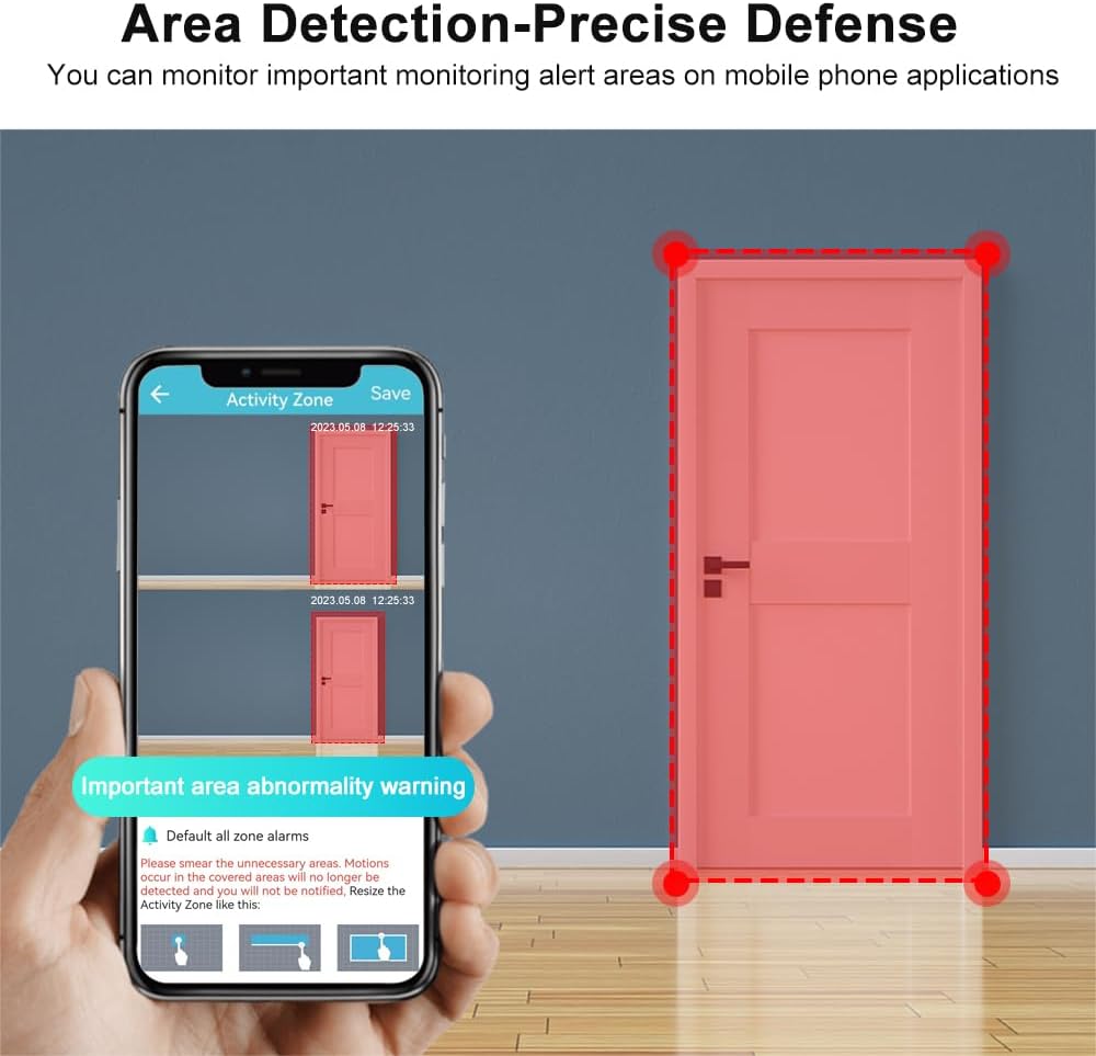 Multi-user access & Cloud Storage: This home surveillance camera bulit in mic and high-power speaker which you could share viewing with your family after scan a QR code. It could starts recording to the micro SD card (NOT included) or paid cloud storage (7-days free) after motion detecting.