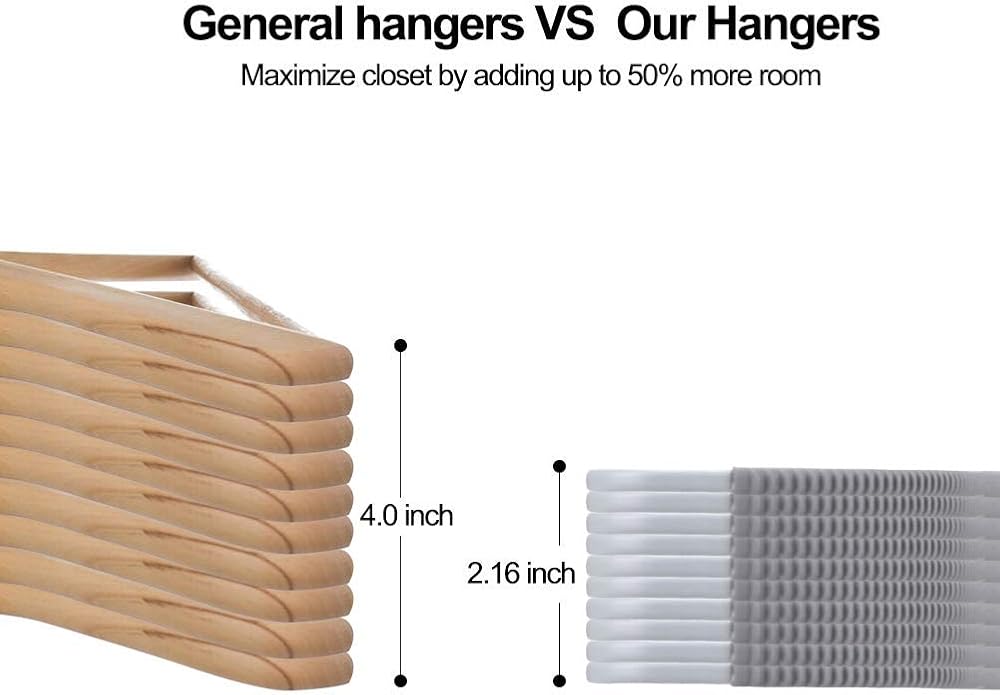 NO MORE SLIP: These TIMMY coat hanger made with the upgraded non-slip rubber pieces which make effective grips, so nothing slips off—not even a silk blouse