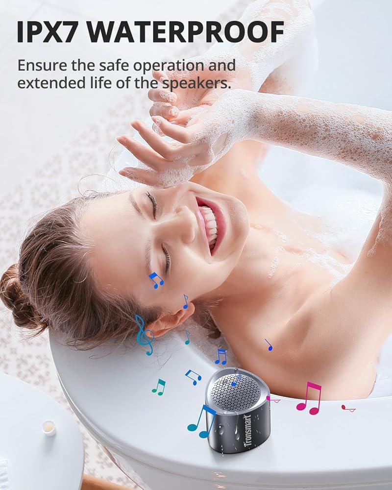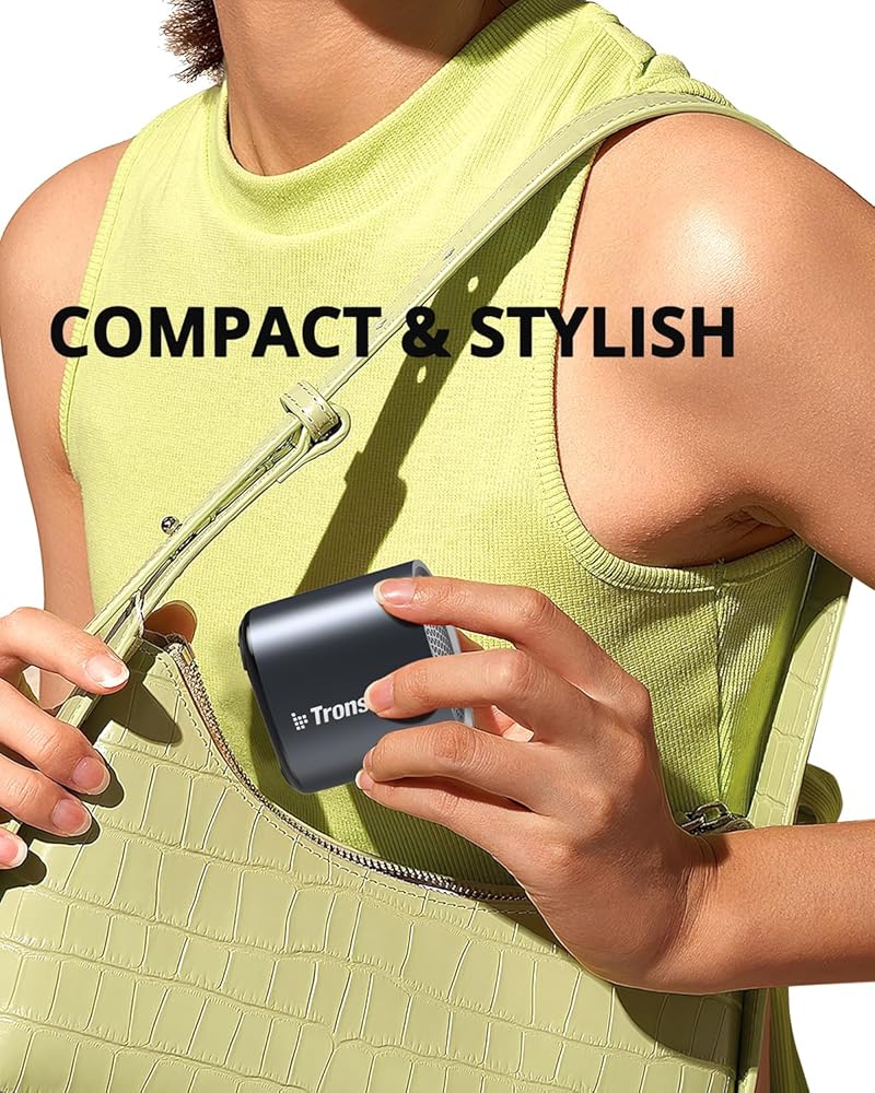 Tronsmart Nimo Portable Bluetooth Speaker, Super-Compact Design, Metal Craft, Mini Speaker with Lanyard, IPX7 Waterproof for Shower, Travel, 12 Hours Battery, Stereo Pairing, Hands-Free Call, Black