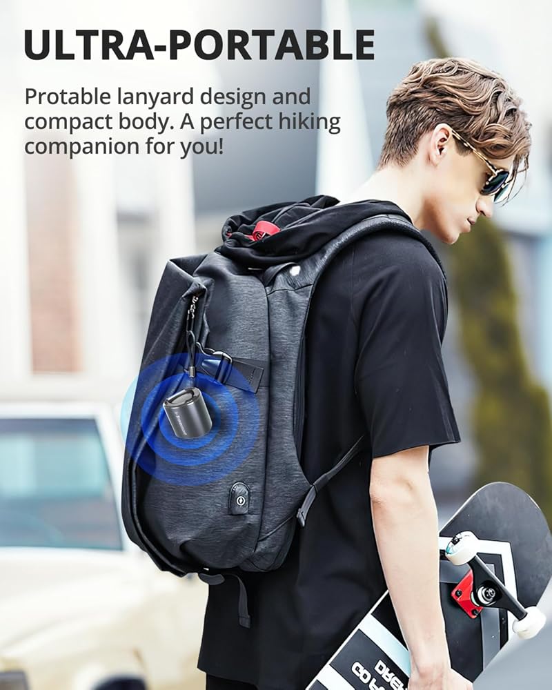 【Easy to Carry】Weighing 0.24 lbs and measuring Φ1.93*H1.81 inches. The Nimo is so tiny that you can just slide it into your handbag or even pocket. Along with the speaker, you will get a lanyard that allows you to take your music on the go, allowing you to secure it in your backpack or bags, providing convenience during travel or outdoor activities.