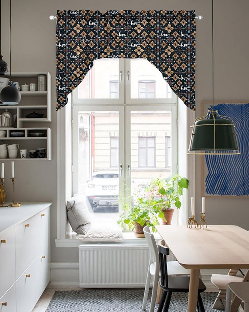 • ✅Size Information: You will get 1 x valance 56" x 36"(18"valance, 18" swag, total height is 36"). Panel curtains top covering of the valance is 18''H and the drape is 36 ''H to fit most standard size windows. Easy-to-install swag valances for windows are designed with a 3-in rod pocket to accommodate a lot of different curtain rods for hanging. Unlike integrated valance curtains for kitchen windows, completely sealing out fresh air, our swag valances for kitchen can meet your ventilation needs.