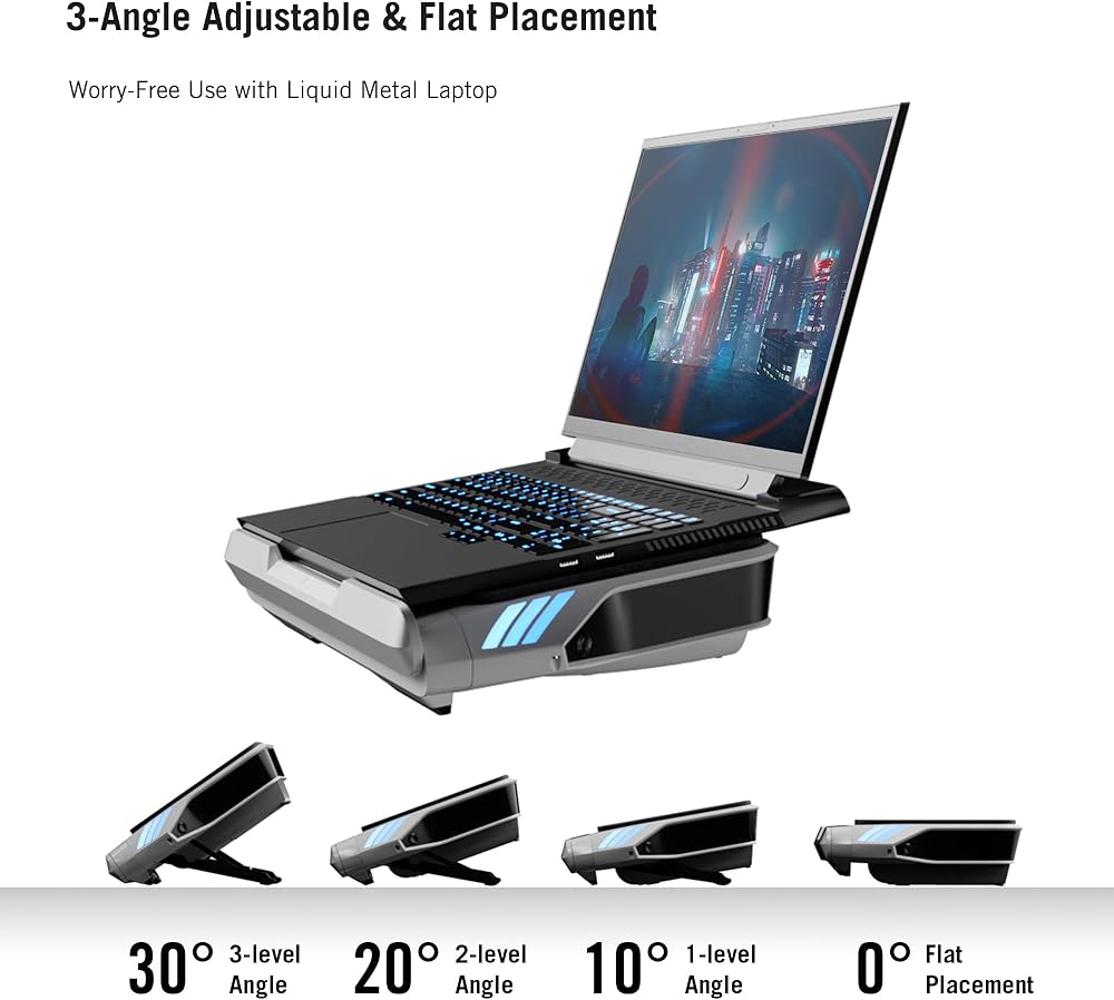 【3-Angle Adjustable & Flat Placement】Worry-Free Use with Liquid Metal Laptop! Support: 30°, 20°, 10°, and 0° Flat Placement.