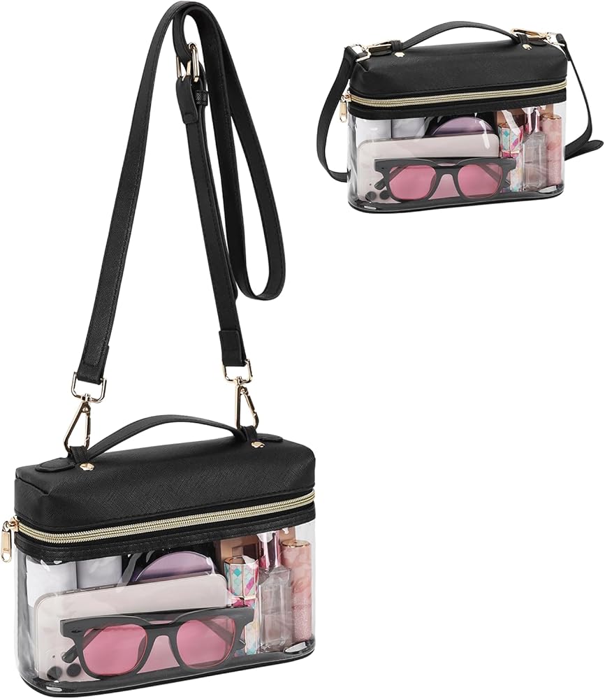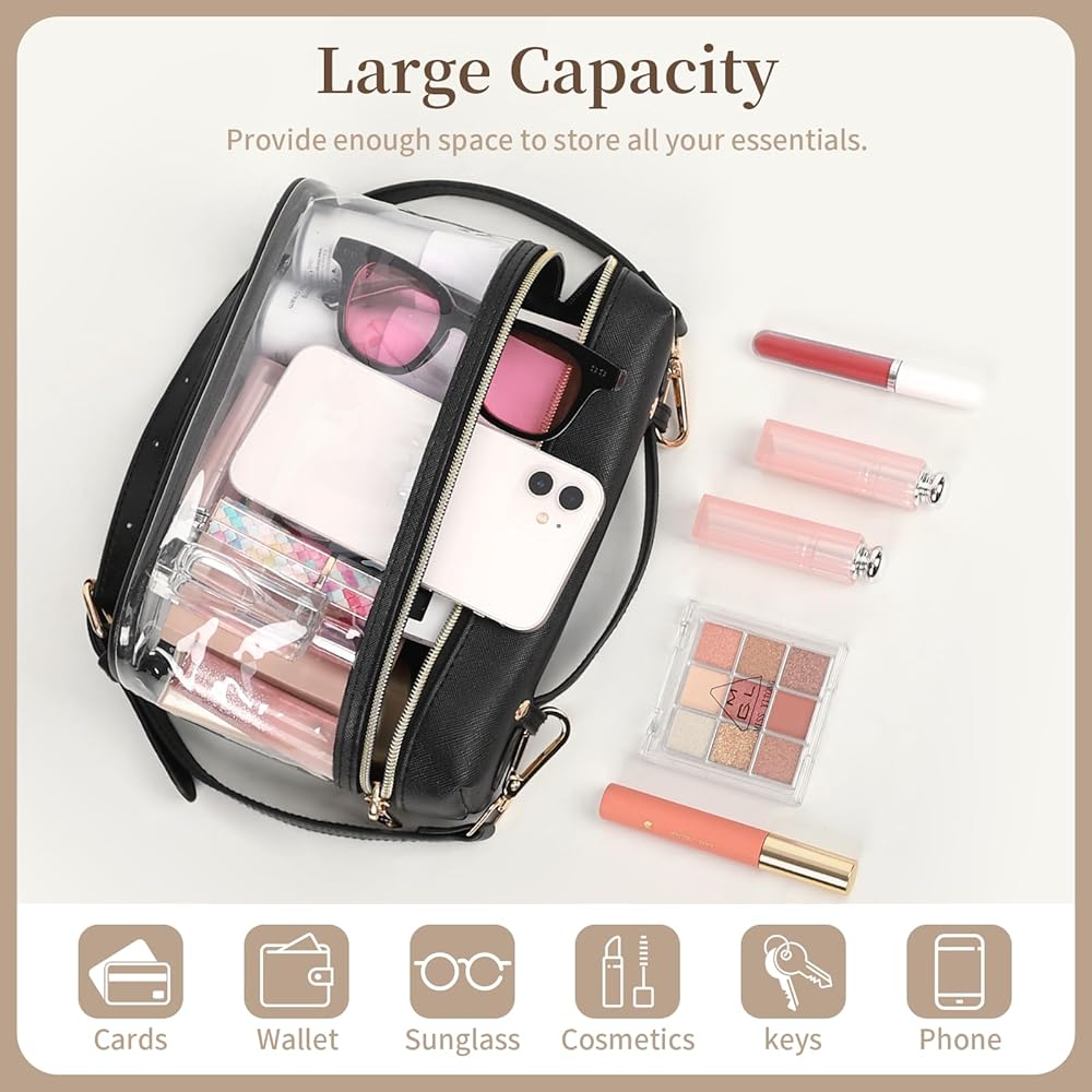 Clear Crossbody Bag Stadium Approved——Size 8.7"L x 2.6"W x 6.1"H, comply with clear bag policies effortlessly (approved size: 12x6x12 inch). Our clear crossbody bag allows you to quickly pass through security checks, making it perfect for sports events, concerts, music festivals and and etc.