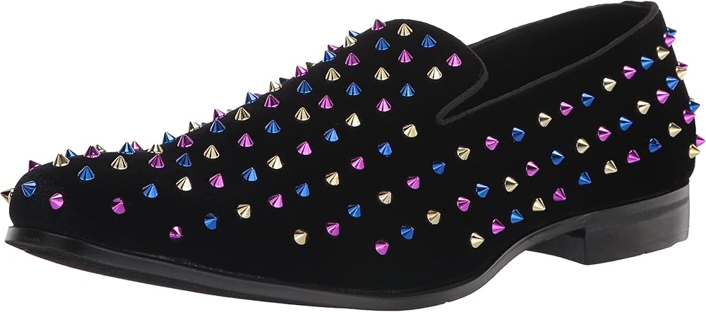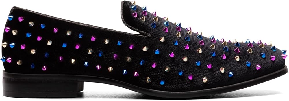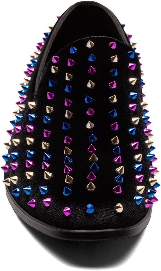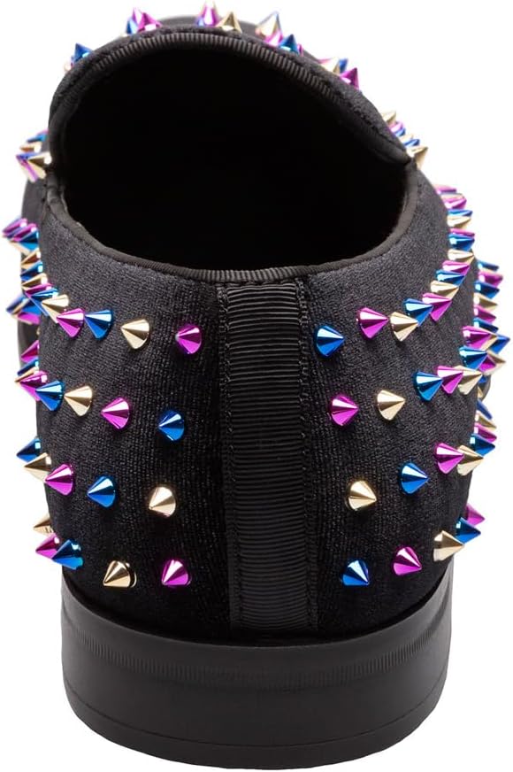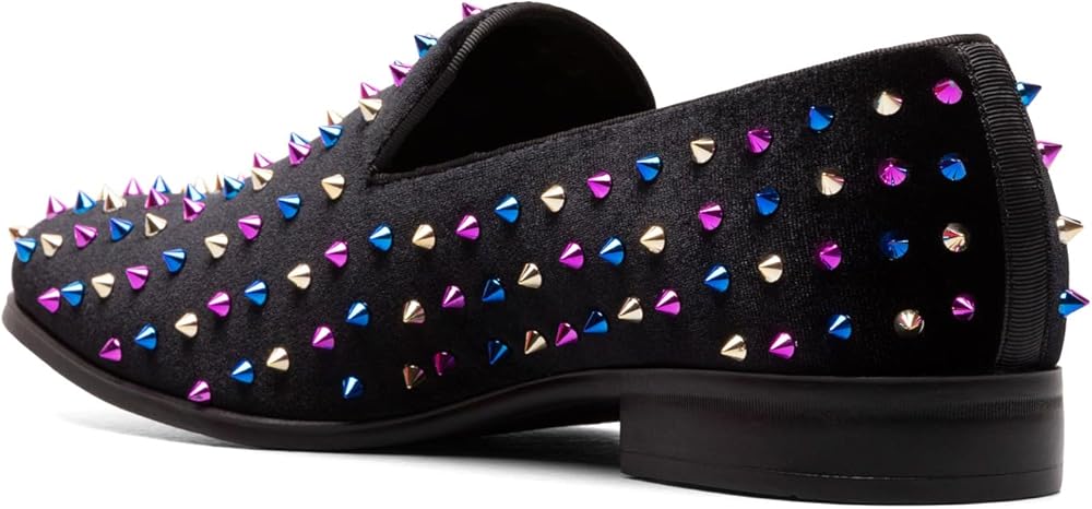 - FASHION STYLE: Make a statement with this fashionable slip on loafer featuring spiked ornamentation and satin fabric linings
