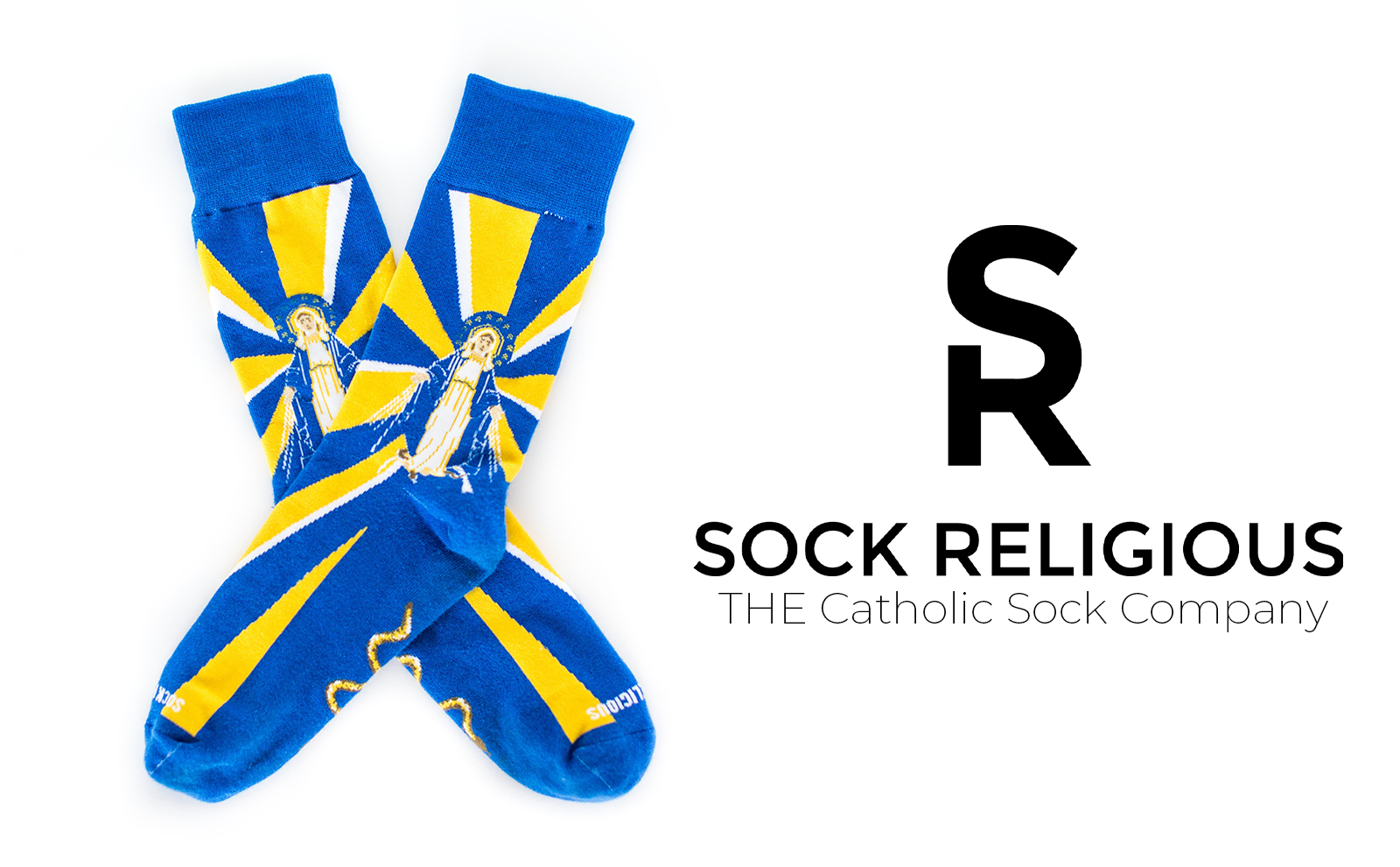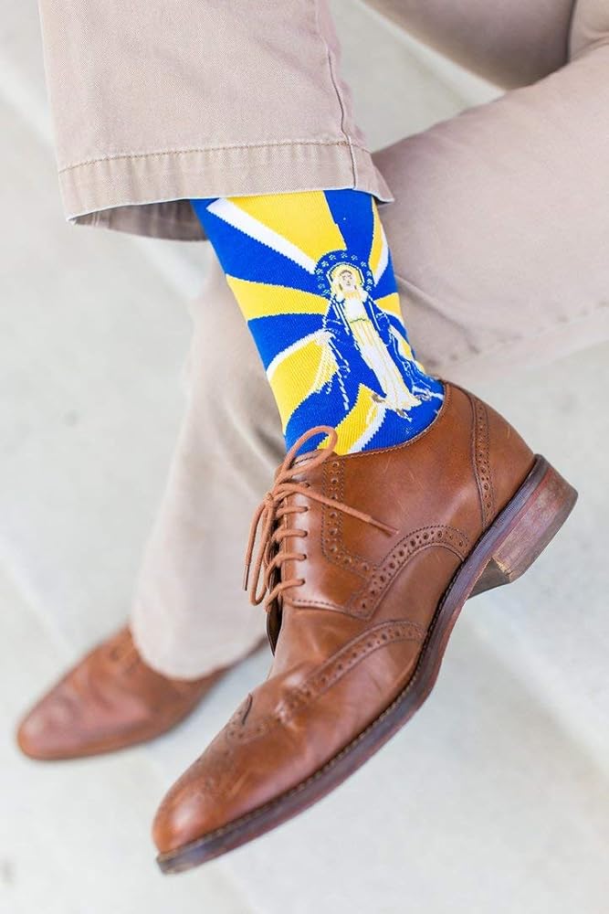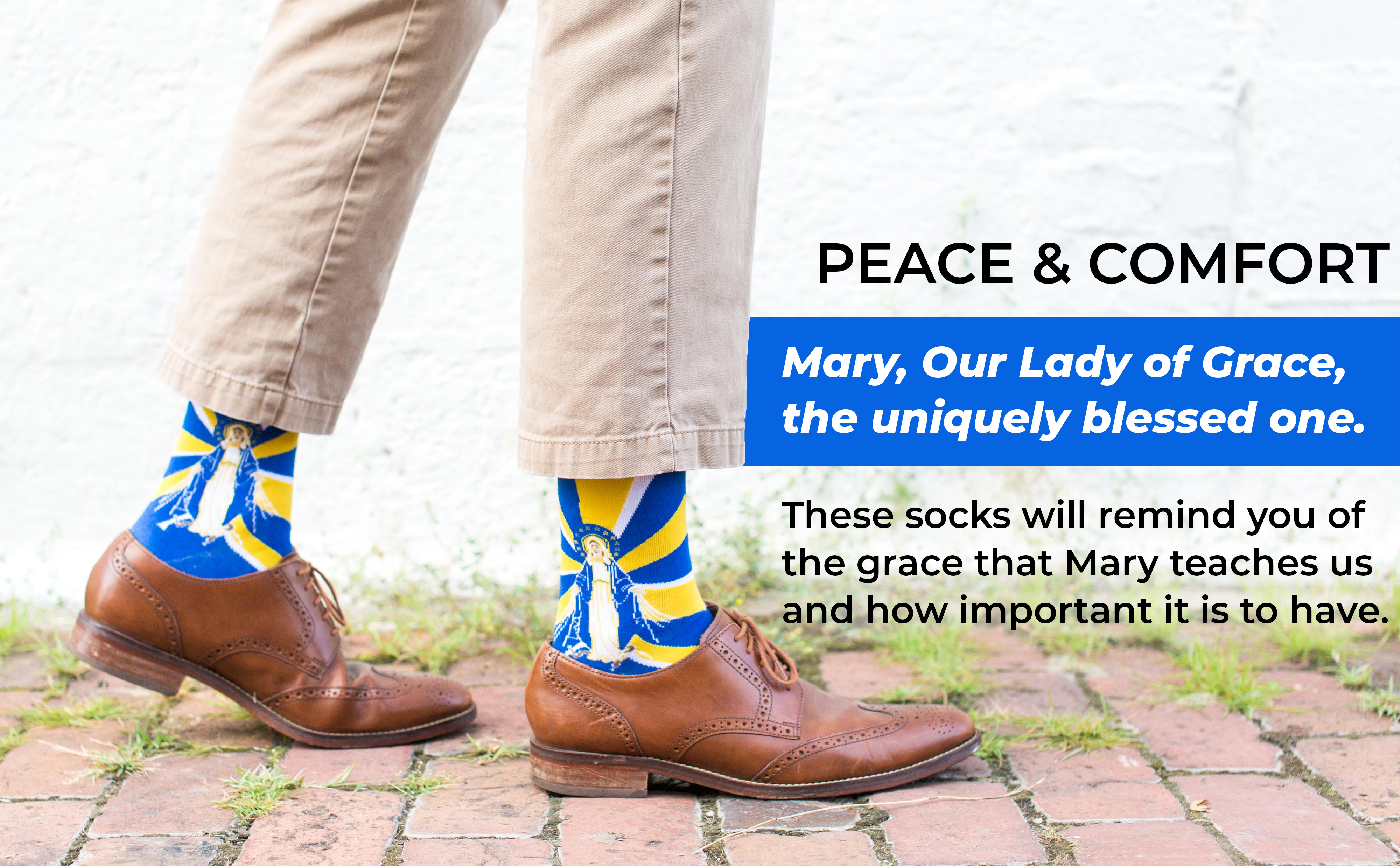 Our Lady of Grace socks feature one of the most well known images of Mary