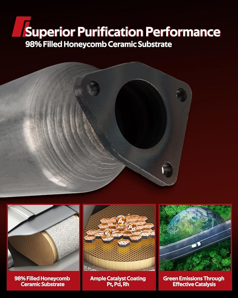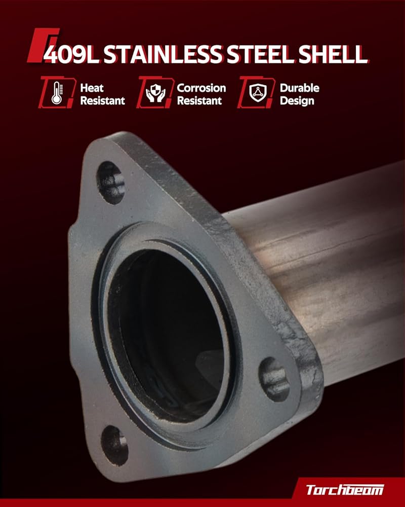 【HIGH FLOW PERFORMANCE】 Torchbeam catalytic converters meet OEM specs, hold EPA certification, and utilize a high-flow design to boost conversion efficiency and vehicle power, all without compromising flow rate.