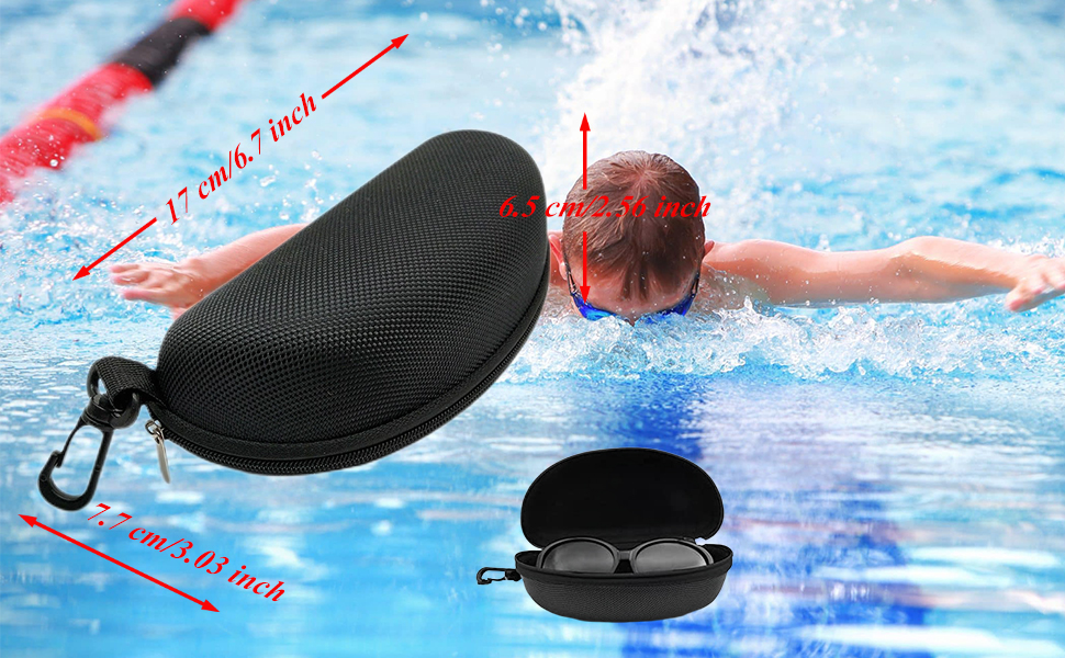 MULTIPURPOSE: The swim goggle cases can not only be used for swimming goggles, glasess and sunglasses, but also can be used to store various swimming accessories, cards, keys, pens, watches, jewelry, cosmetics, small electronics, or other small items