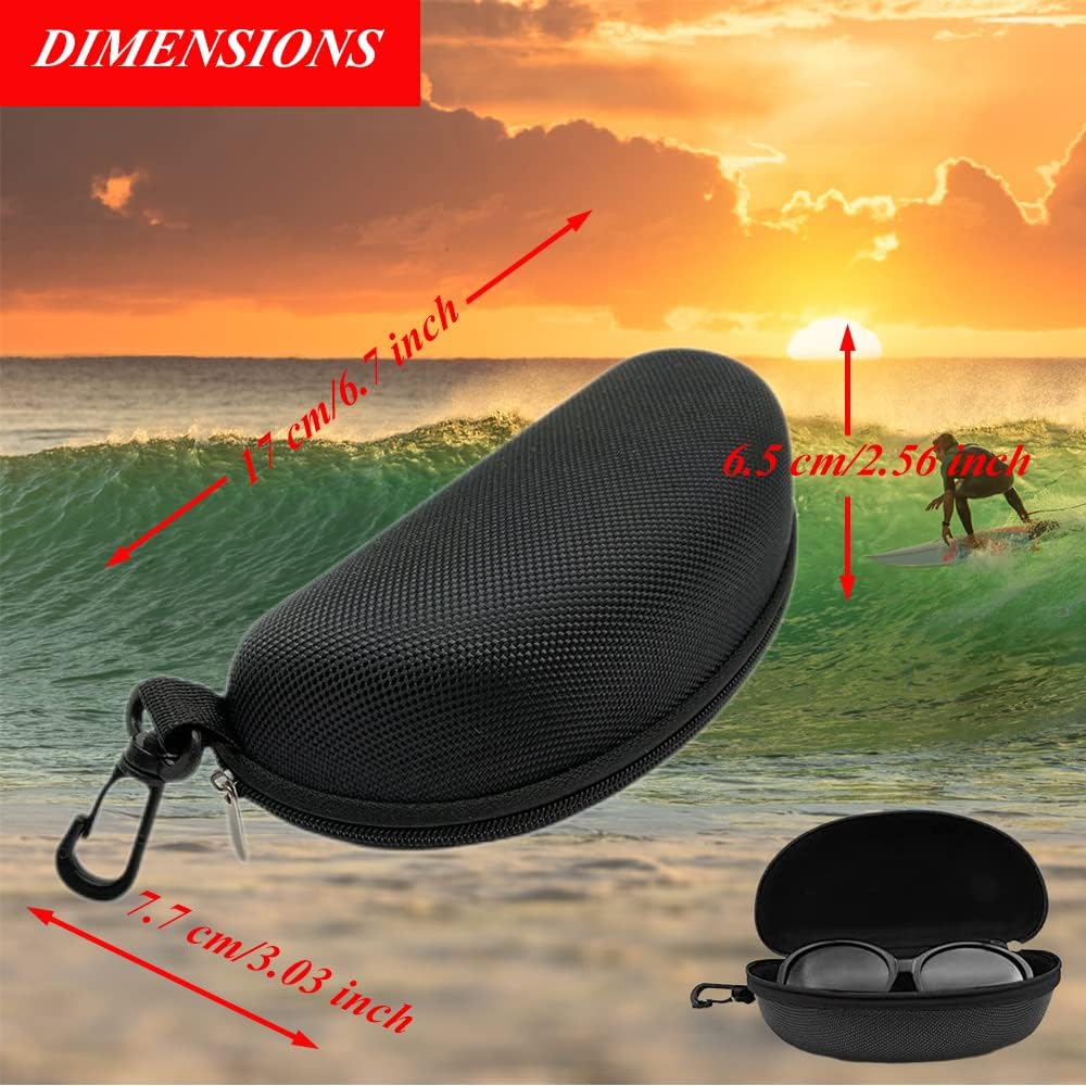 UNIQUE DESIGN: The cases adopt the design of zipper closure and carabiner-style keychain clip, which can ensure that your glasses will not fall out of the case and attaches the glasses case to your handbag, backpack or tote bag conveniently to carry your sunglasses, swim goggles or any eyewear to beach or sports.