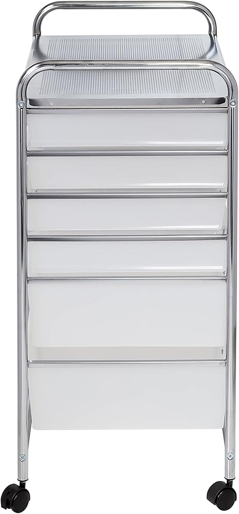Polished chrome frame with semi-transparent drawers of two sizes