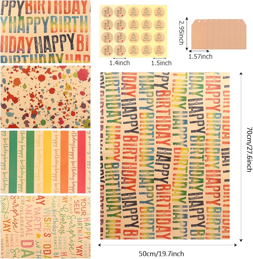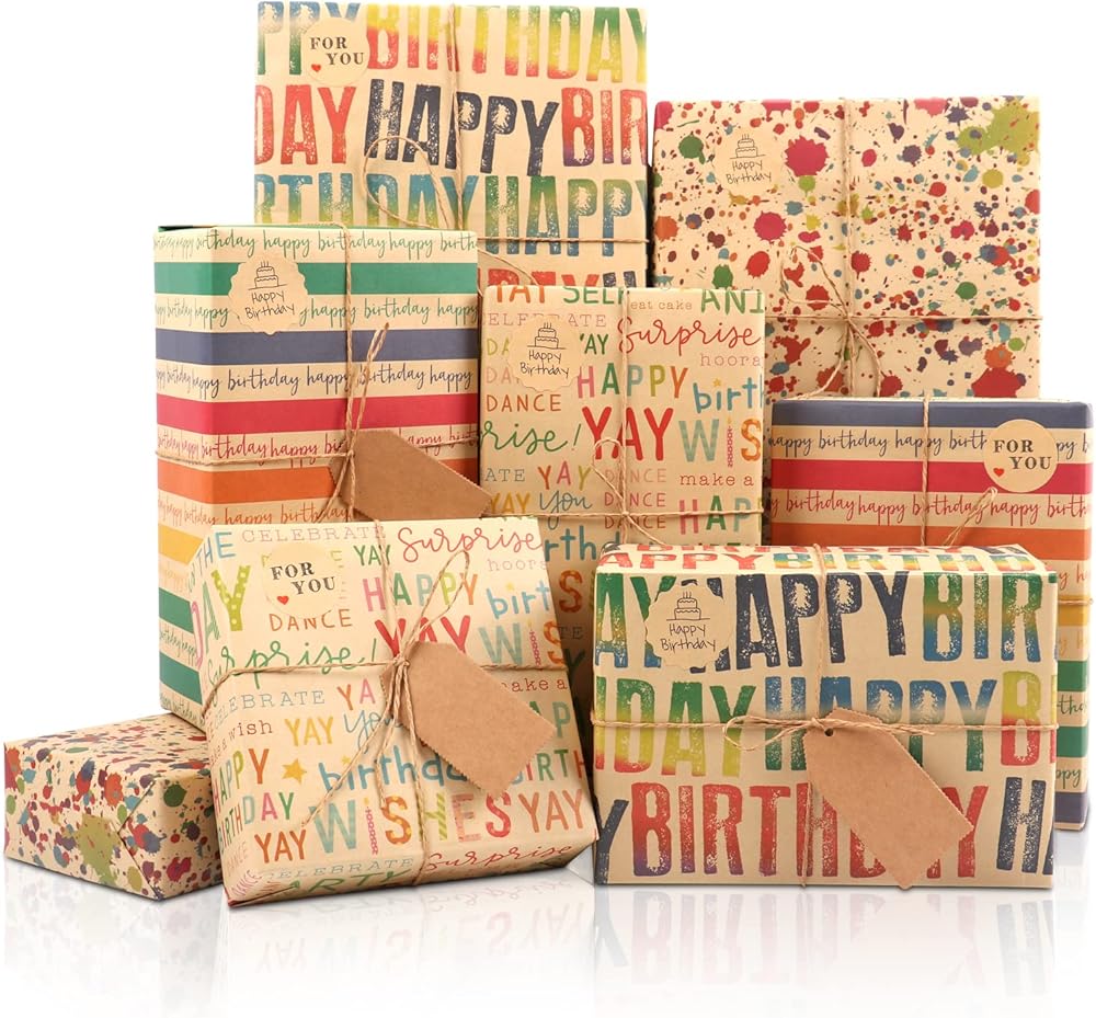 UNIQUE DESIGN: This wrapping paper set comes with 6 “Happy Birthday” pattern design. The design makes your gift looks more adorable and out of the ordinary.