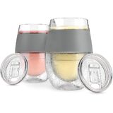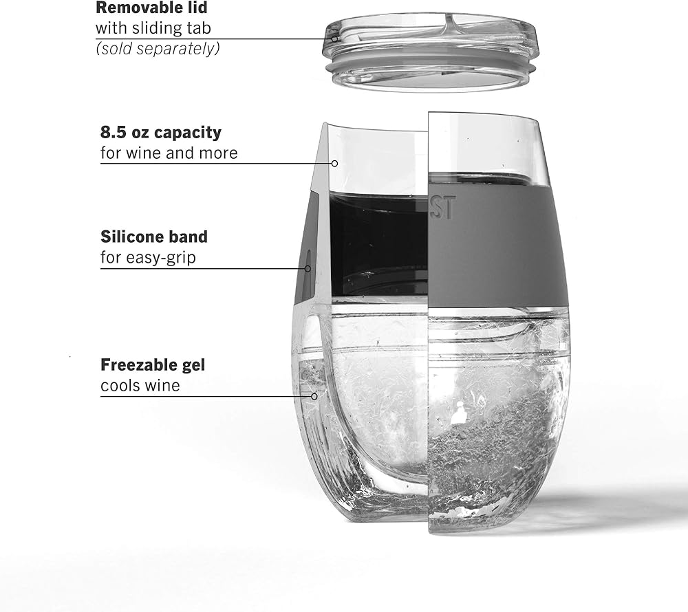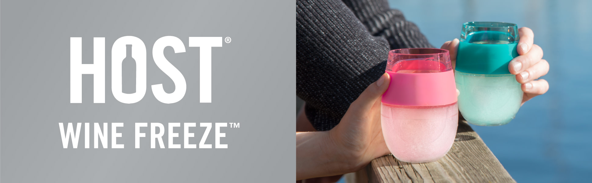 WINE FREEZE Cooling Cups are perfect for all wines. Each stemless wine tumbler features our proprietary cooling gel which allows the cups to be frozen or chilled to the ideal temperature for serving and enjoying any wine varietal. For red wine, refrigerate the Wine FREEZE for at least two hours to keep your drink between fifty-eight and sixty degrees Fahrenheit. For white wine, freeze the Wine FREEZE for at least two hours to keep your drink between forty-three and fifty-three degrees Fahrenheit. The Wine FREEZE is precisely engineered to keep your beverage perfectly cold for hours. Each stemless tumbler is constructed with an insulated silicone band for comfortable handling, and can easily accommodate 8.5 ounces. Hand wash only. For the best results, place the Wine FREEZE upside down in the freezer to allow the gel to evenly spread and freeze. Originally developed for wine, the HOST FREEZE line has grown to include popular whiskey tumblers, beer drinkware, cocktail glasses and other cooling accessories in dozens of colors. HOST's beverage accessories solve everyday problems with creative engineering. From versatile wine accessories to chilling drinkware, these easy-to-use gadgets make life refreshing for everyone.