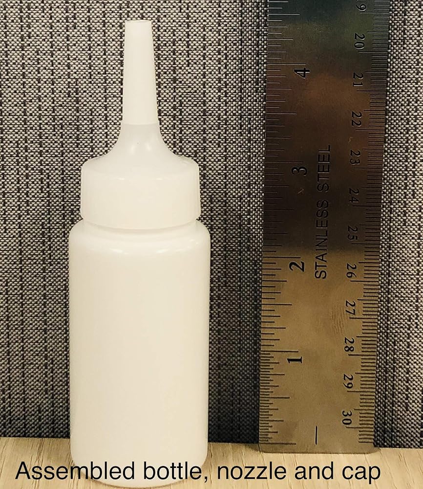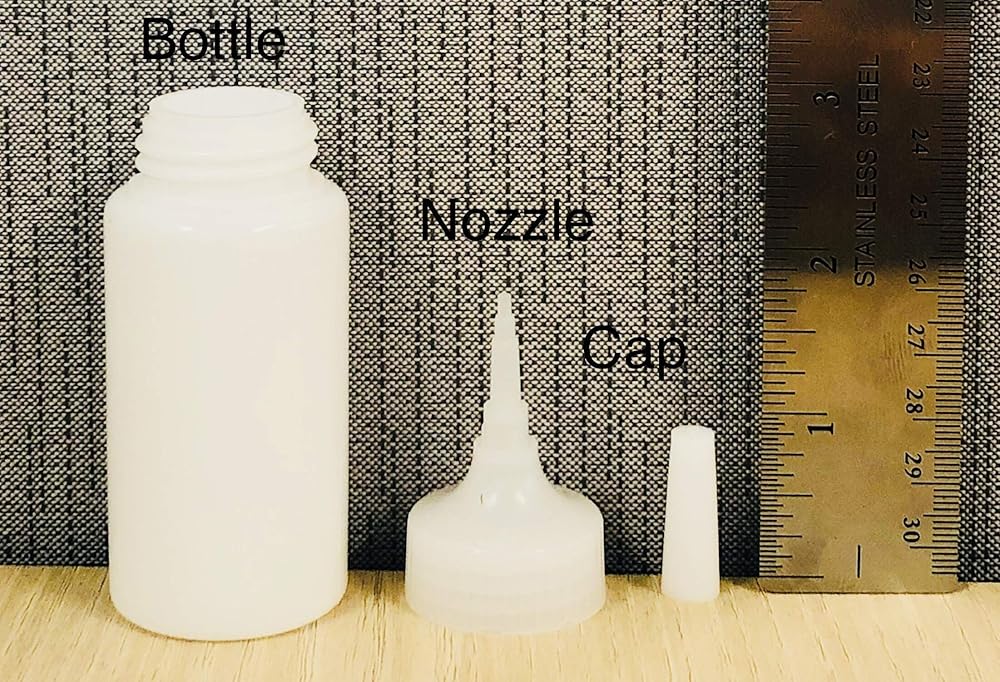 Empty 50 gram (1. 76 ounce) bottles are ergonomically designed for the hand delivery of cyanoacrylate adhesives and other fluids directly from their original packaging. The bottle is made of low density polyethylene plastic which is compatible with cyanoacrylate adhesives and other fluids.