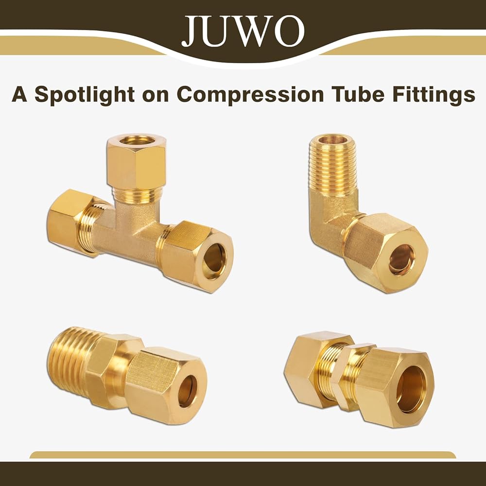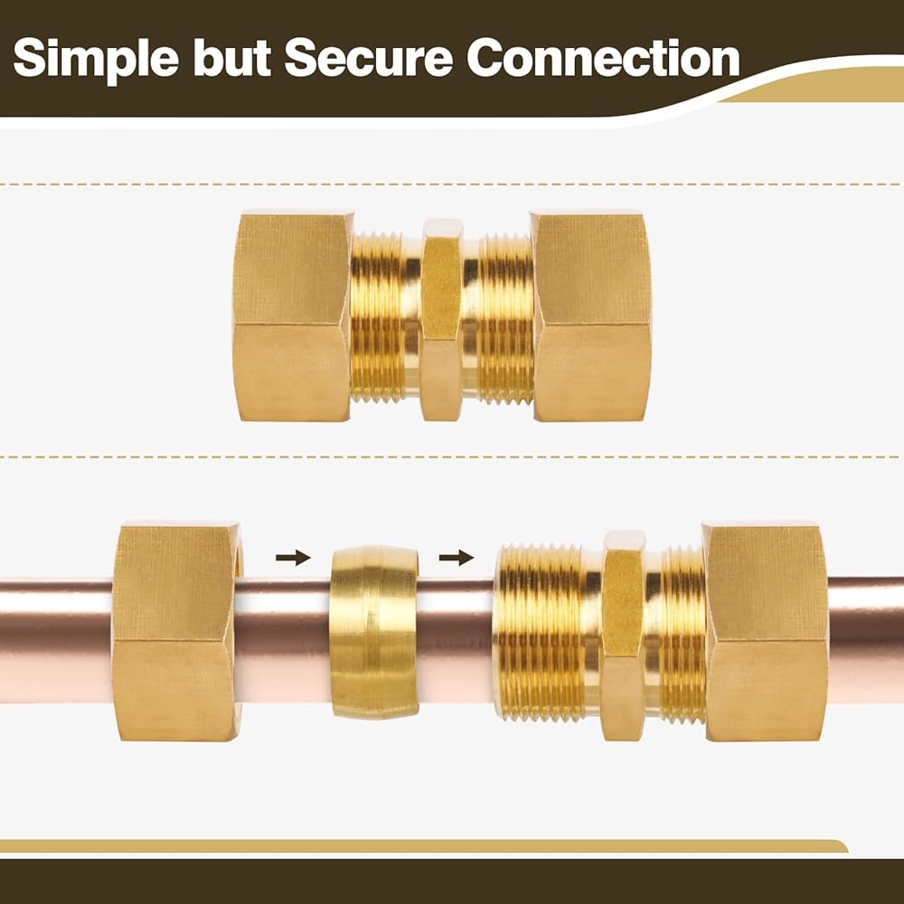 JUWO Brass Compression Tube Fitting, Union, 3/4" × 3/4" NPT Compression Fitting for Copper, Fuel and Brake Line Connections, 1200 PSI (1 Pack)