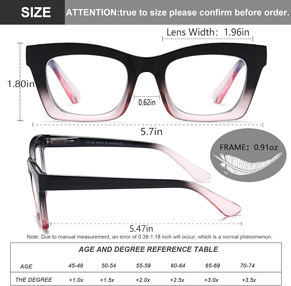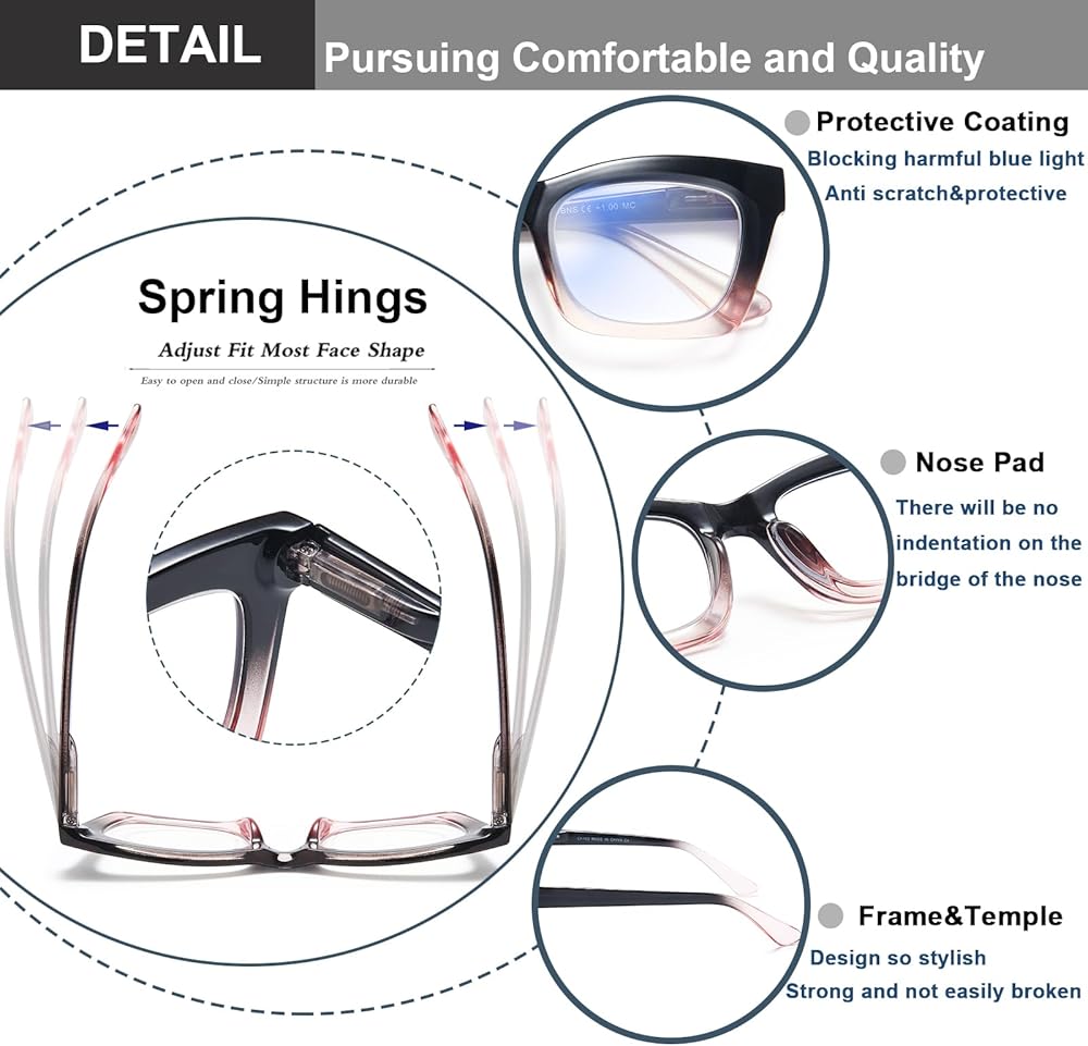 [High-Definition Lens] - Our blue light reading glasses for women are made of HD lens, easy to clean, scratch-resistant, no color difference, give you a clear vision. Ladies reading glasses are available in multiple degrees, provide you with accurate magnification, and bring you the best reading experience.