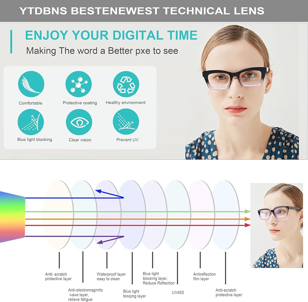 [Blue Light Blocking Glasses] - YTDBNS reading glasses with UV400 protection can effectively block blue light. Womens reading glasses can relieve eye fatigue, dry and vision falling caused from long periods of reading, using pc/ tv/ phones.