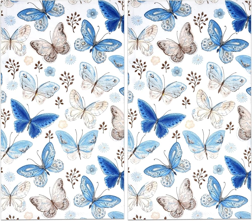 Vintage Butterfly Guest Napkin: Gift Boutique butterfly guest napkins features blue and brown butterflies with little branches and flowers. These napkins will definitely enhance your table and impress your guests. Measurements: 7.5" x 4.25" folded and 15" x 12.75" unfolded. For Gatherings & Special Events: Perfect for 50th anniversaries, birthday parties, tea gatherings, and wine tasting. Flawless napkins for wedding receptions, engagement and graduation parties, fancy restaurants, holidays, hearty lunch and more! Treat your guests with all the attention they truly deserve! High Quality: Napkins are made of high quality thick paper. Napkins are soft and absorbent & dry your hands quickly. These napkins will be great for any spring butterfly themed party. The butterfly party napkins really adds dimension to your parties as your guests will love the cute and pretty design. Enough For Your Guests: Stock up with these floral butterfly napkins so you can be assured that you will have enough for all your guests who will attend your party. Serve dinner to guests in catering, buffet, potluck, events or daily meals. More Time to Enjoy: Disposable paper reduces clean-up time so you can enjoy more time with friends and family. Ideal for dinner table placement, office, party decor, powder room, bathroom vanity, kitchen counter top and guest bathrooms.