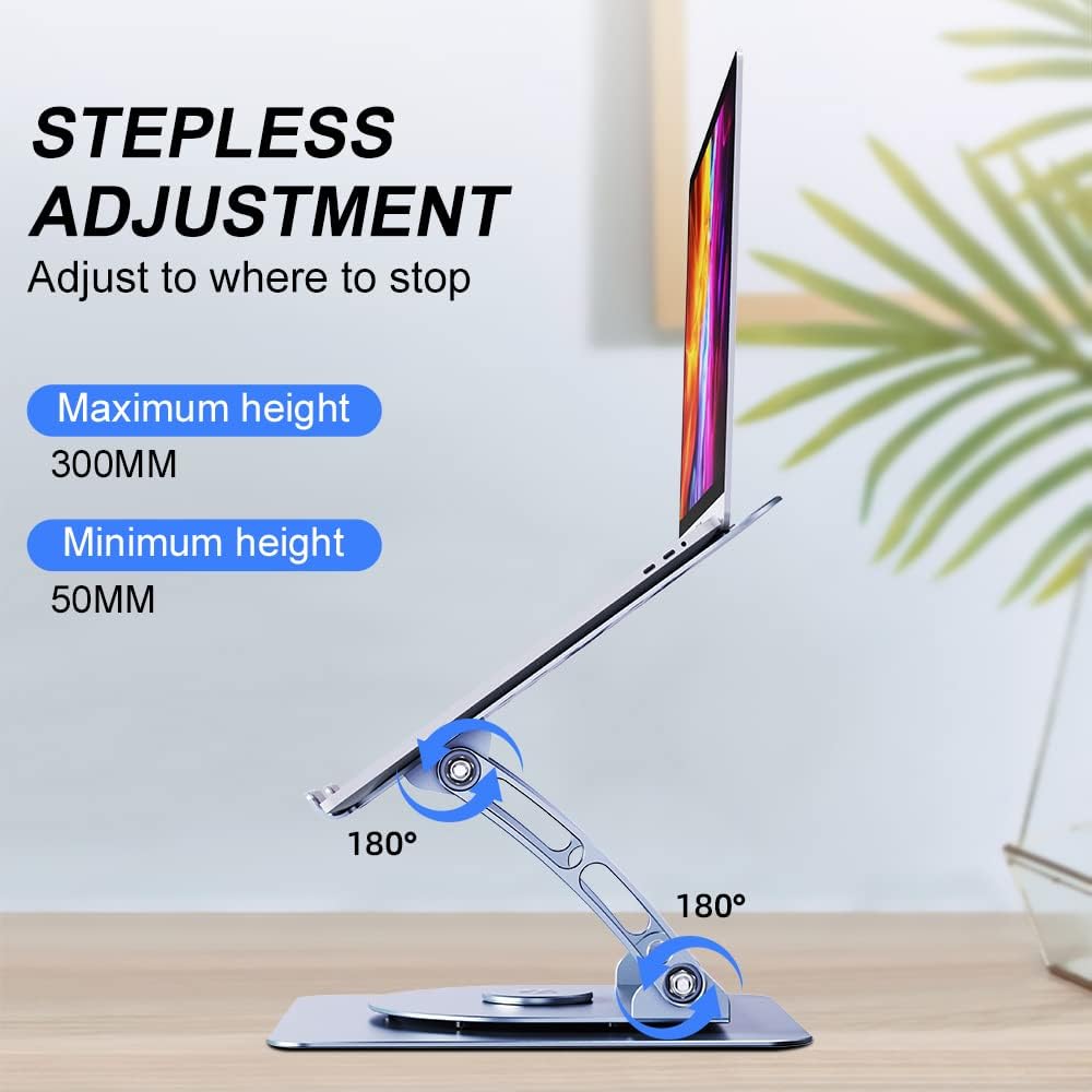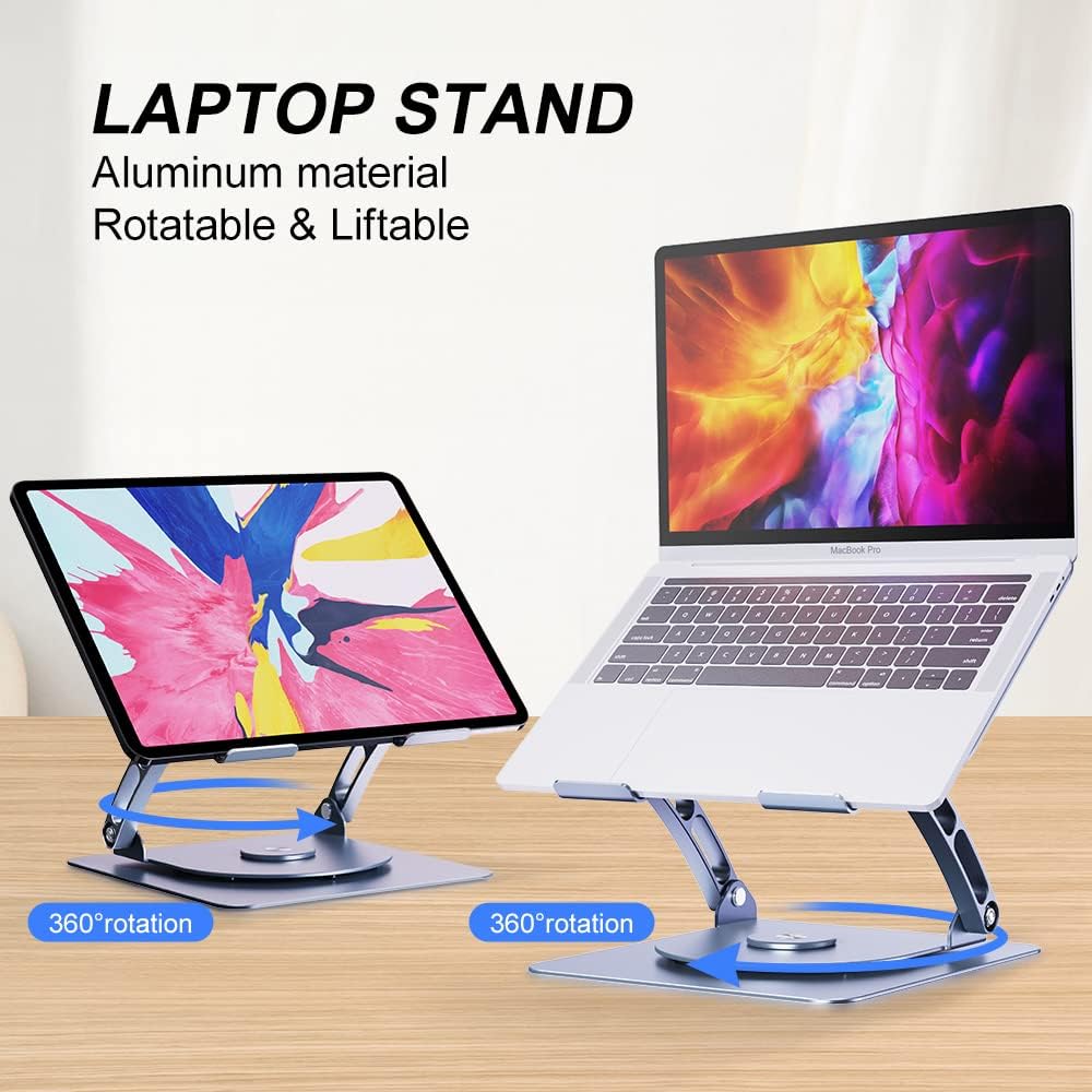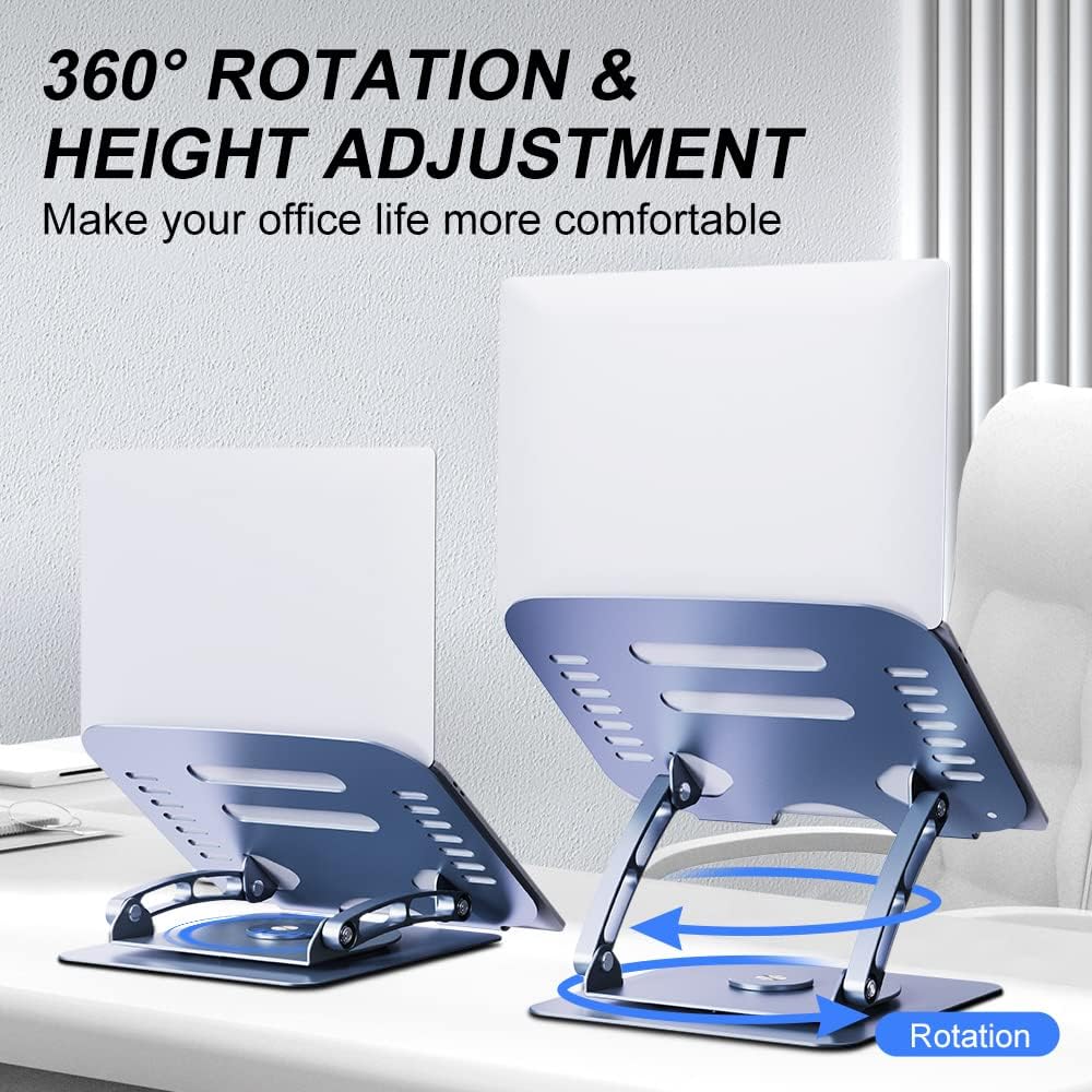 Adjustable Laptop Stand with 360 Rotating Base, Ergonomic Aluminum Alloy Laptop Riser,Dual Rotary Shaft Fully Foldable for Easy Storage,Compatible with Laptops and Tablets