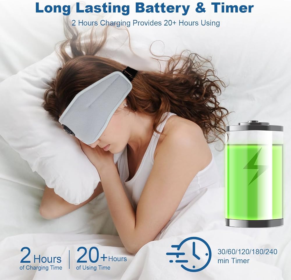 【Comfortable & Adjustable】The material used in this product is skin-friendly and breathable, giving you maximum comfort. The sponge is removable for easy cleaning. It can be adjusted to match the size of your head circumference, and the position of the headphones can also be adjusted, bringing you the most sleep/relax experience.