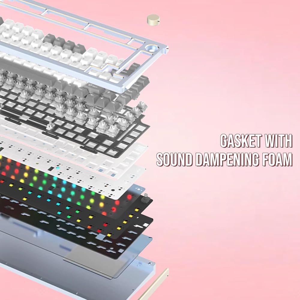 【FR4 Plate and Comprehensive Foam Kit】The use of an FR4 plate—a high-density fiber material that strikes a balance between the rigidity of an aluminum plate and the flexibility of a PC plate—ensures a solid yet less harsh typing experience. This material choice provides a balanced typing experience. To further refine the acoustic performance, we incorporate five layers of sound-dampening materials: Poron pcb-plate foam, IXPE switch foam, PET noise cancellation pad, Poron case foam, and PET insulation pad. These layers work together to enhance the sound, reduce vibration and rattle, and eliminate metal pinging.