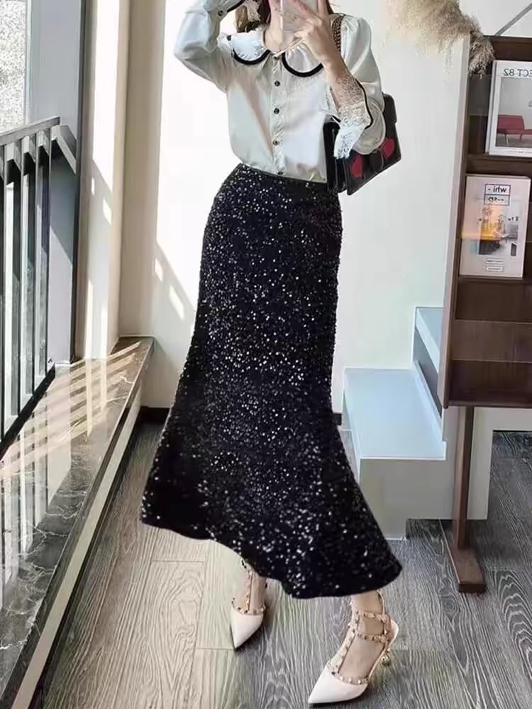 Versatile: Perfect for any occasion, our women sequin fishtail skirt can make you look youthful and elegant. It's suitable for work, office, business, dating, shopping, party, club, traveling, photoshoot, holiday, vacation, etc.