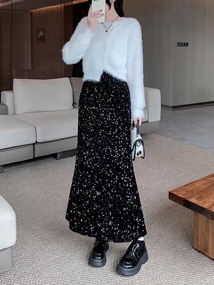 Features: This women sequin fishtail skirt is elaborately designed with high waist skirts, long bodycon skirt, and sequin mermaid skirt, making you look more attractive and energetic.