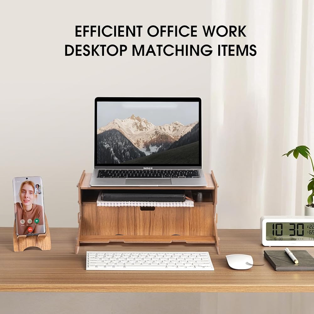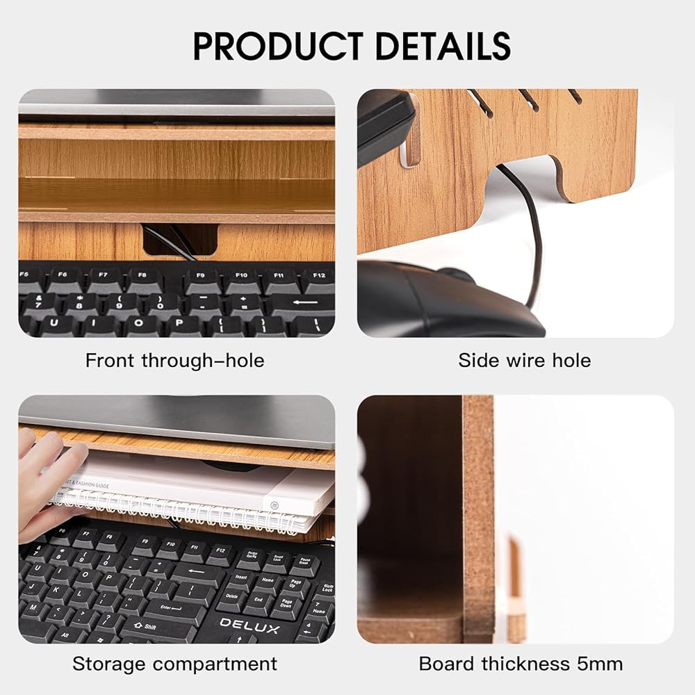 【 High quality materials 】Our monitor riser is made of high-quality environmentally friendly wood, with a thickness of 5mm, and can withstand around 35 pounds of external force. Enable your device to be securely supported. In addition, it can be quickly cleaned and also supports washing. The beautiful wood grain is perfect for your office, living room, bedroom, and study.