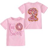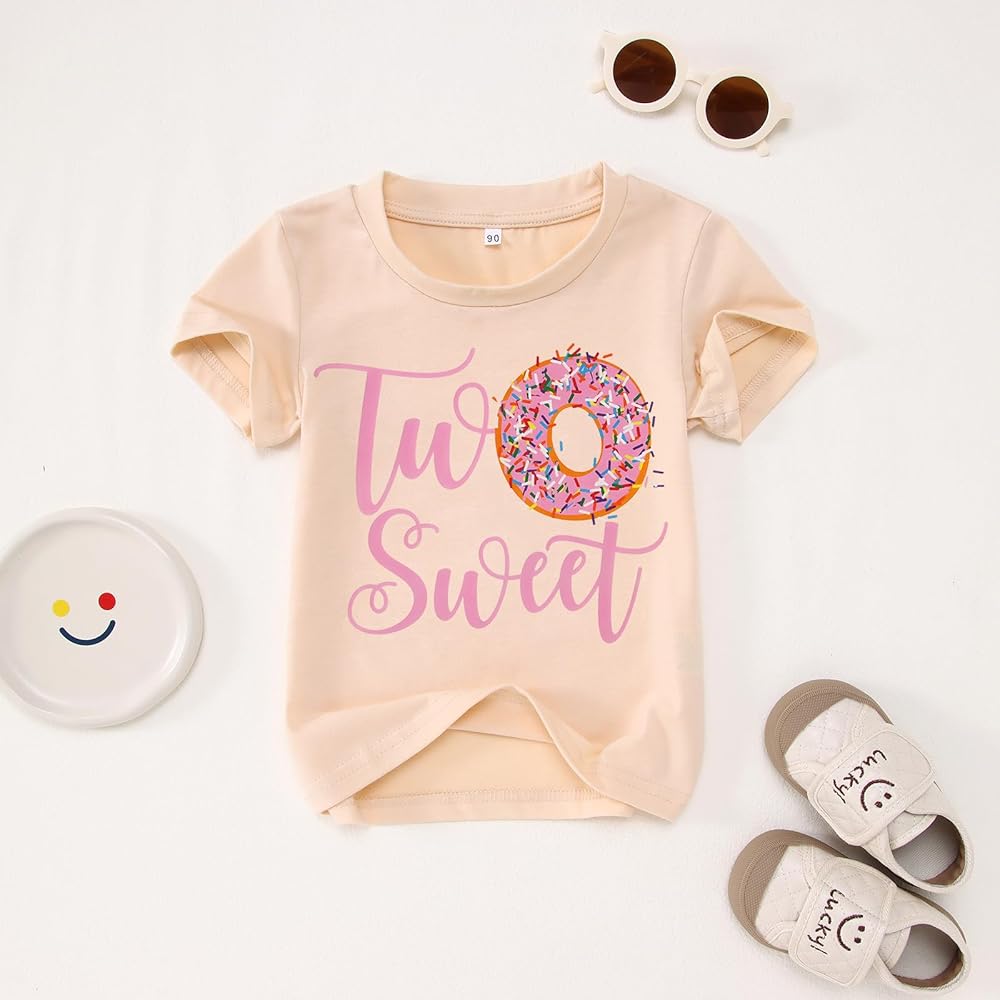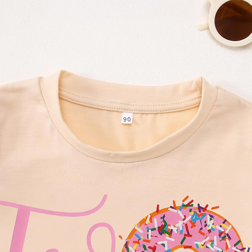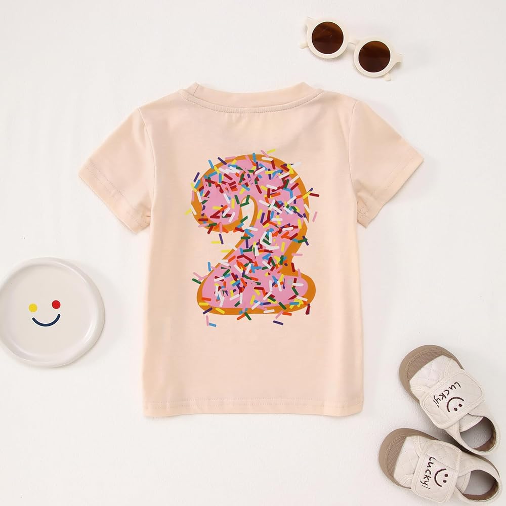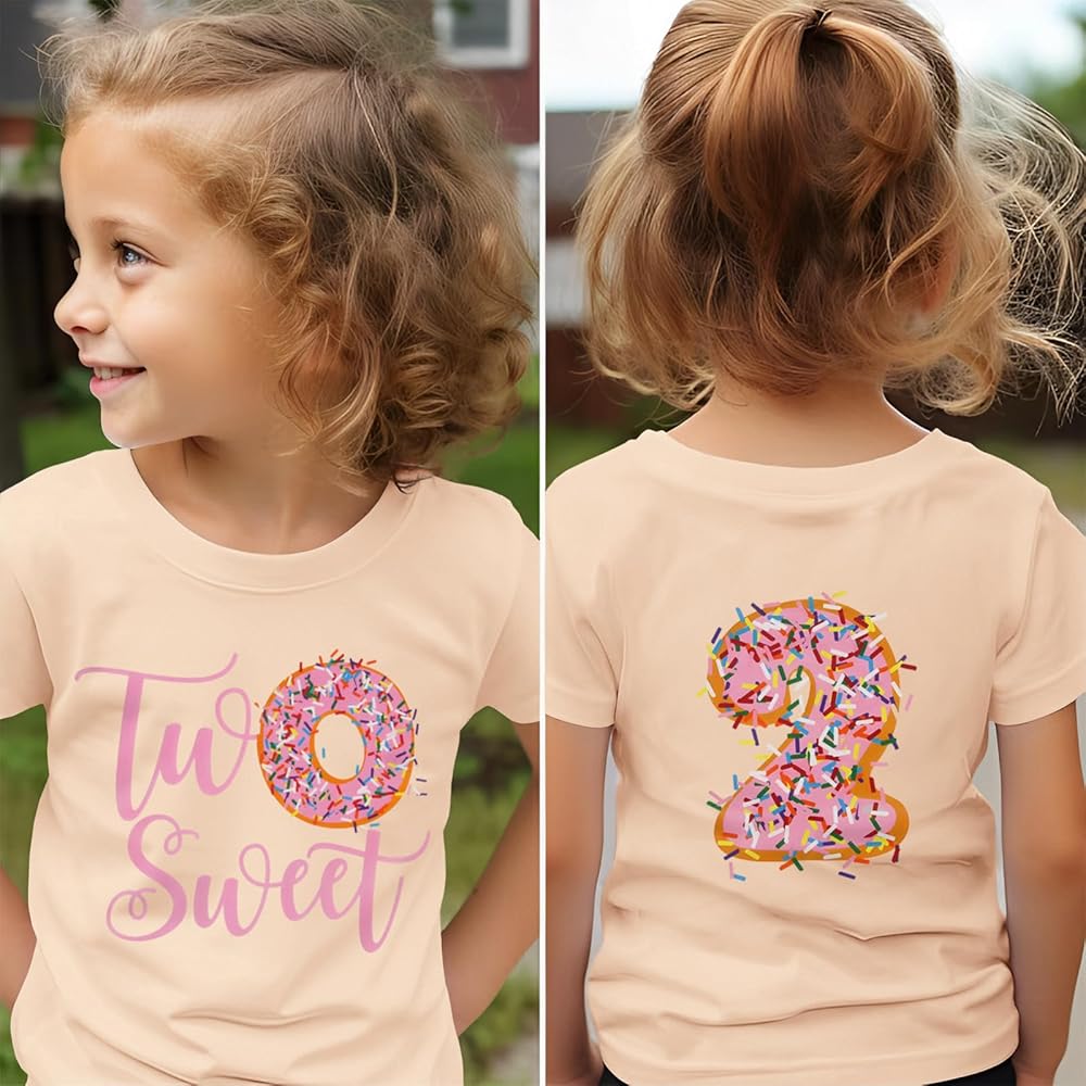 Features: This toddler girl birthday tshirt with two side graphic design, so sweet donut pattern on the front, one/two/three/four/five number donut back design, fashion doughnut print, summer short sleeve t-shirt tops for toddler baby girl, birthday tee shirt tops for kids toddler baby girl 1-5t. Make your princess birthday outfit picture perfect with this sweet donut birthday girl t-shirt.