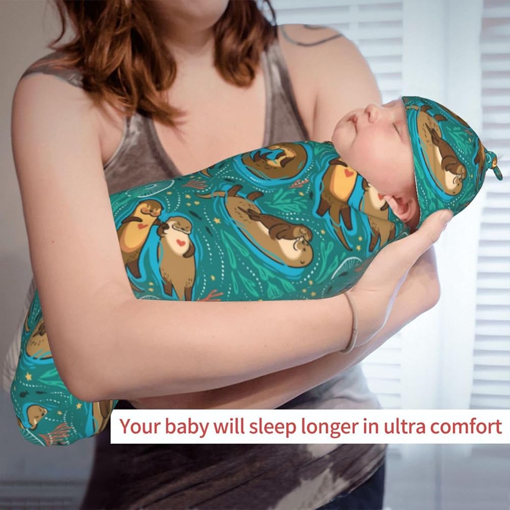 Baby Swaddling Blanket With Hat Set. Fashionable And Cute Pattern Design. Excellent Photography Props.