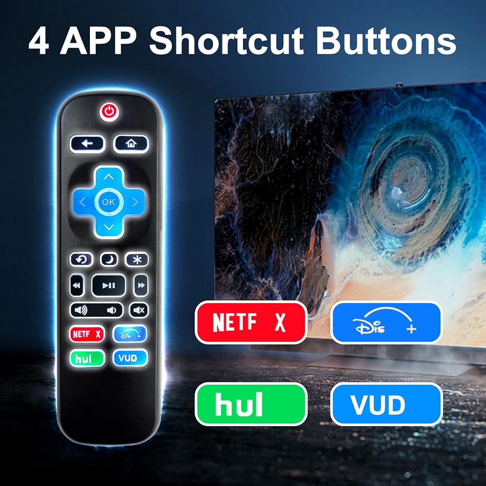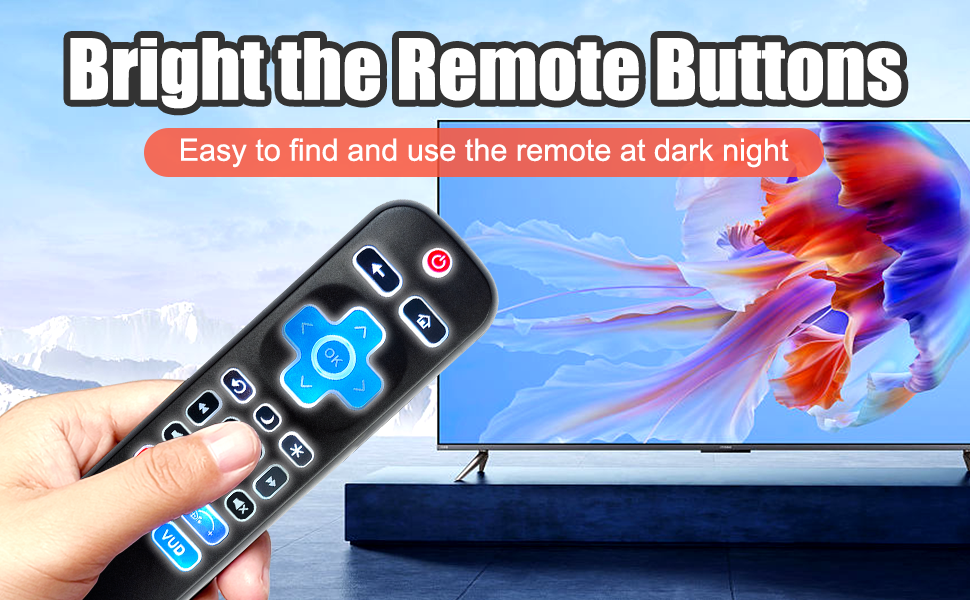 【Unique Backlight Function】Easy to find the remote for Roku TV at dark night. Just press any button, and the backlit will be on for 5 seconds, and it will automatically turn off.