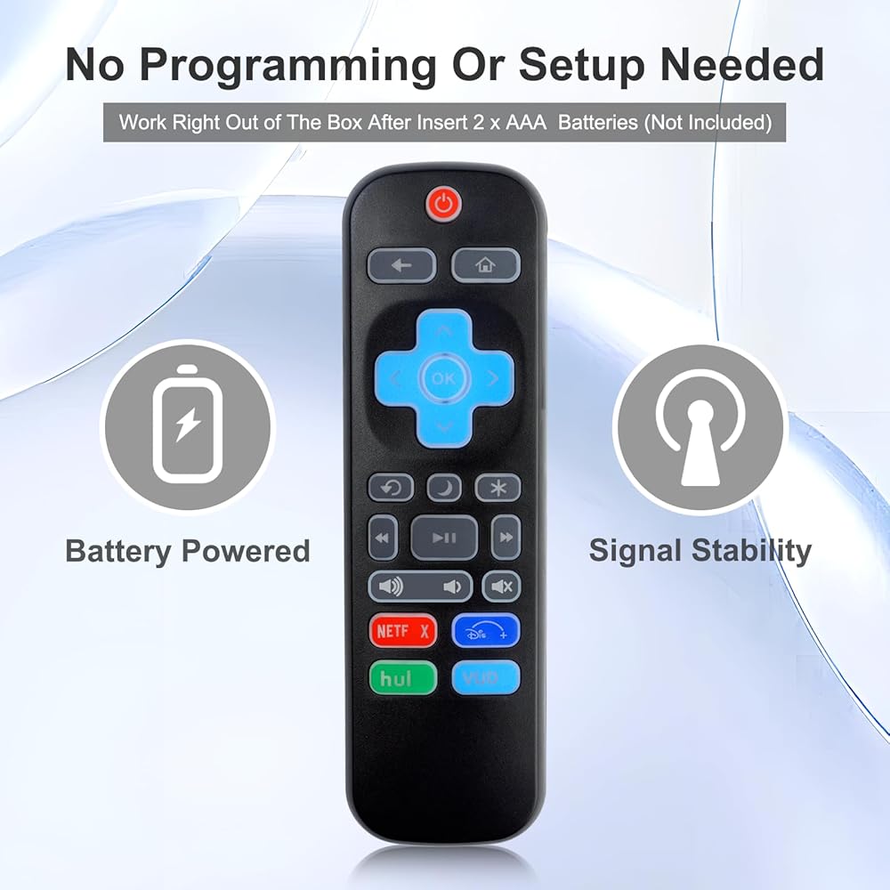 【Universal Remote for Roku TVs】Compatible with TCL/ Hisense/ Onn / Sharp/ Element/ Westinghouse/ Philips/ Insignia/ JVC/ RCA/ Sanyo Roku TVs. Work out of the box, easy to use.