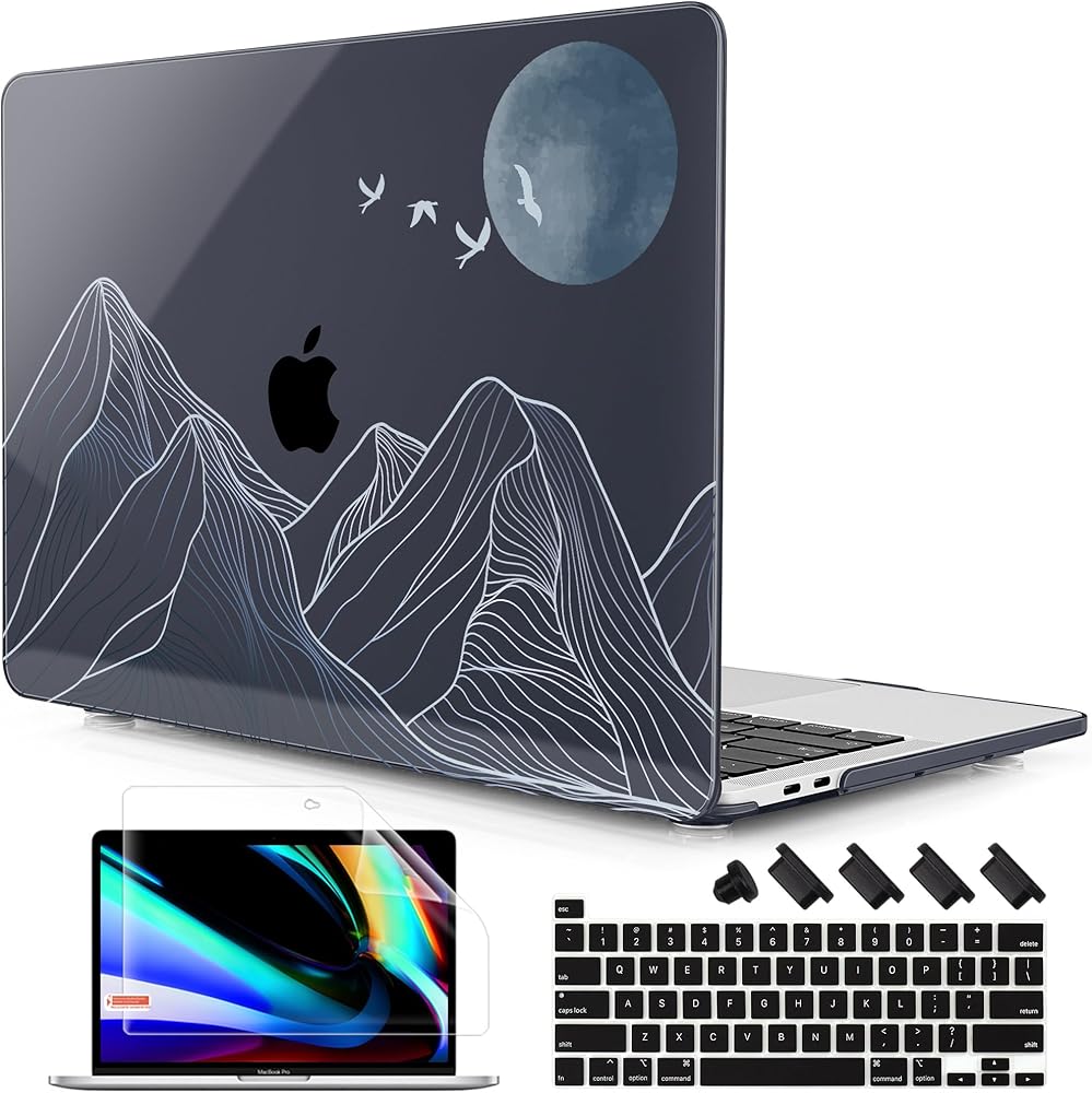 Case for MacBook Pro 13 inch with/Without Touch Bar (2016-2022, M2 A2338 M1 A2289 A2251 A2159 A1989 A1706 A1708), Hard Shell + Keyboard Cover + Dust Plug Abstract Mountain