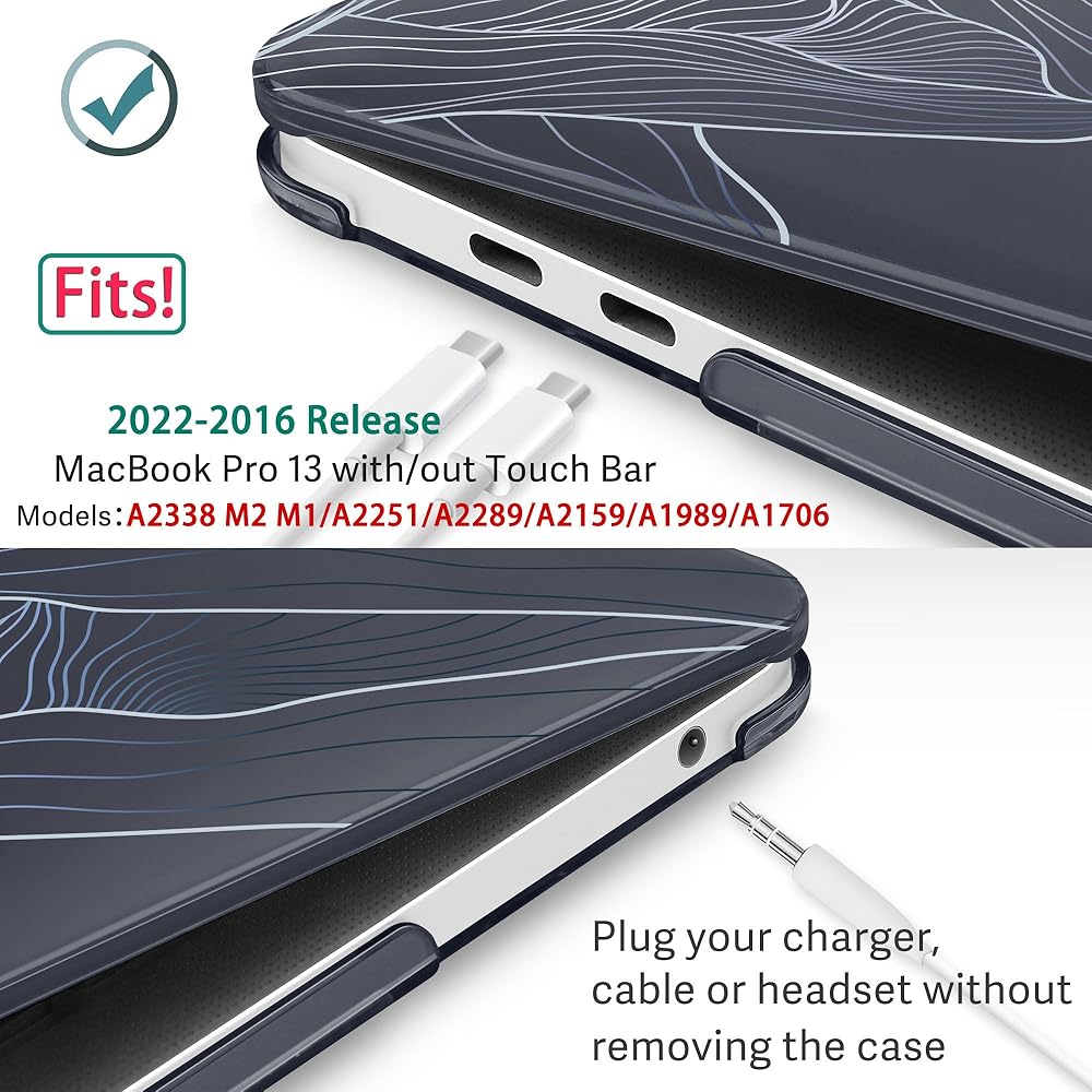 【COMPATIBLE WITH】-- Only compatible with MacBook Pro 13 inch 2022 2021 2020 2019 2018 2017 2016 Release (Model: A2338 M1 M2/ A2289/ A2251/ A2159/ A1989/ A1706/ A1708). Please kindly check model number "A1xxx"on the back of the for MacBook before your purchase.