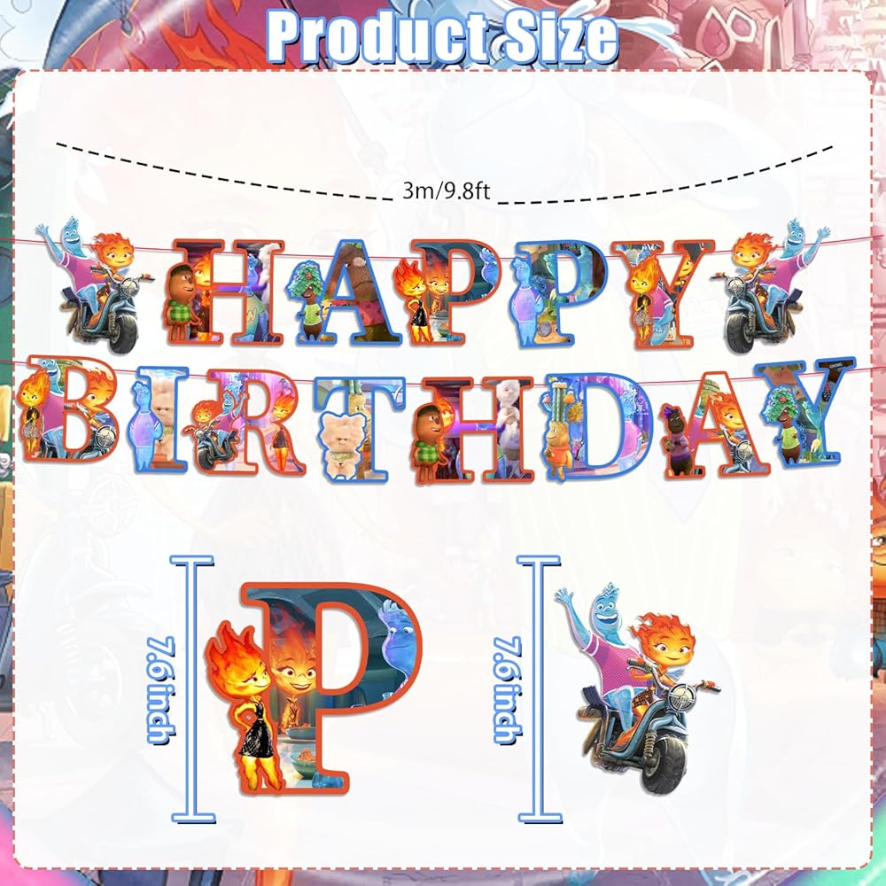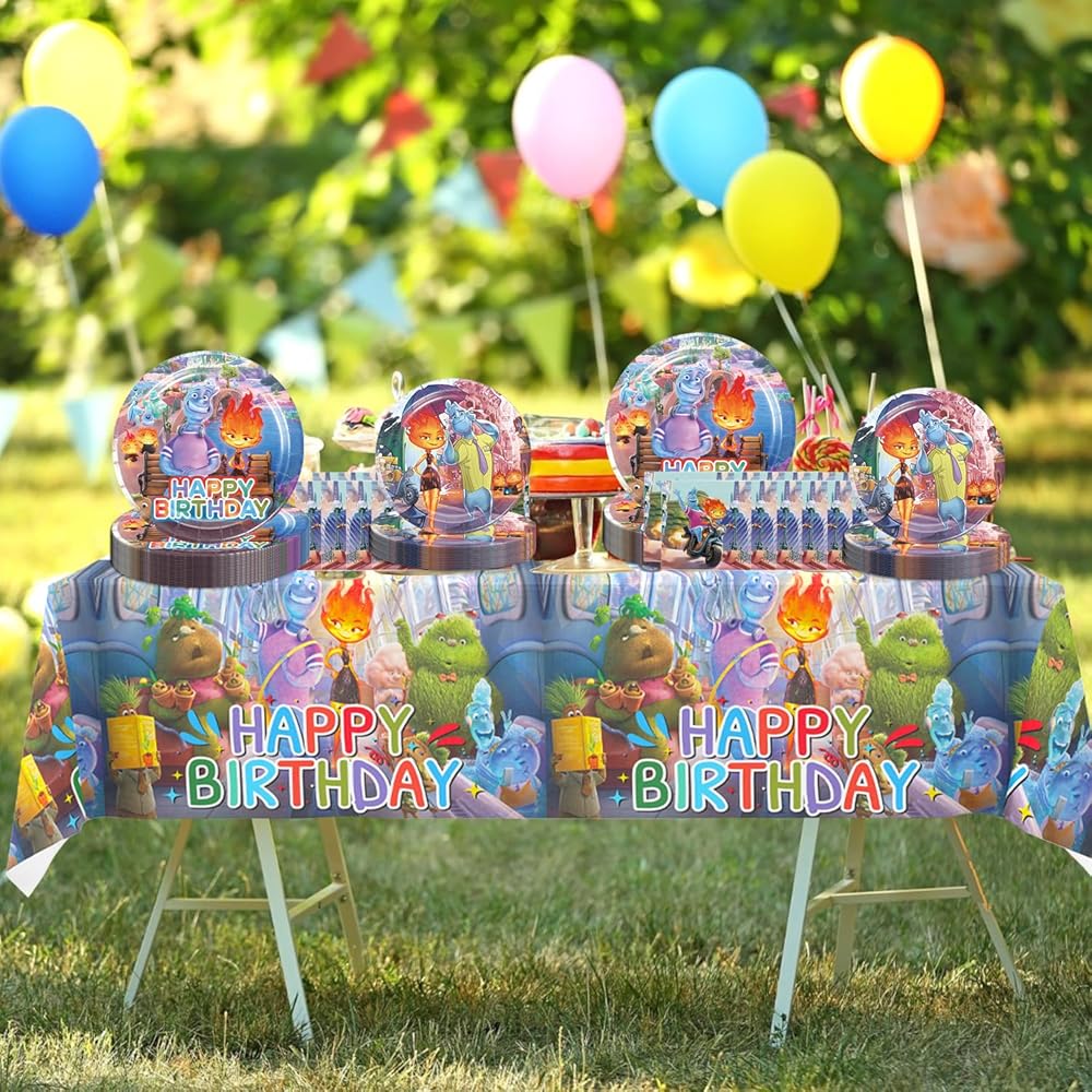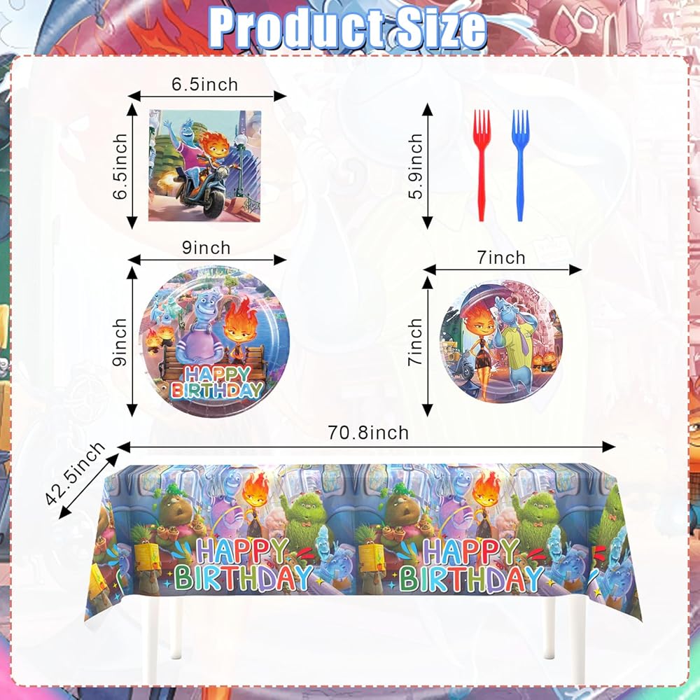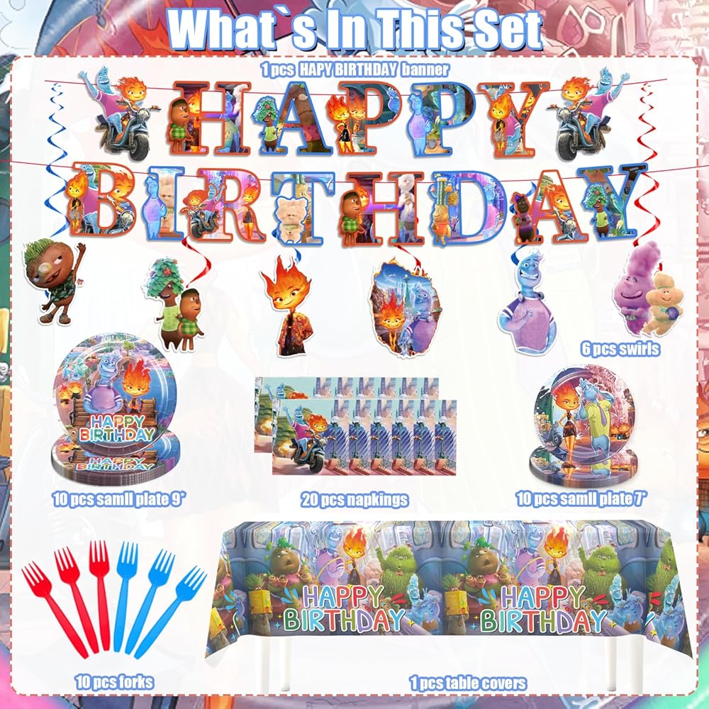 Elemental Party Decorations Tableware Set,Elemental Birthday Party Decorations Include Banner Hanging Swirls, Plates, Forks, Tablecloth, Napkins, Movie Party Supplies