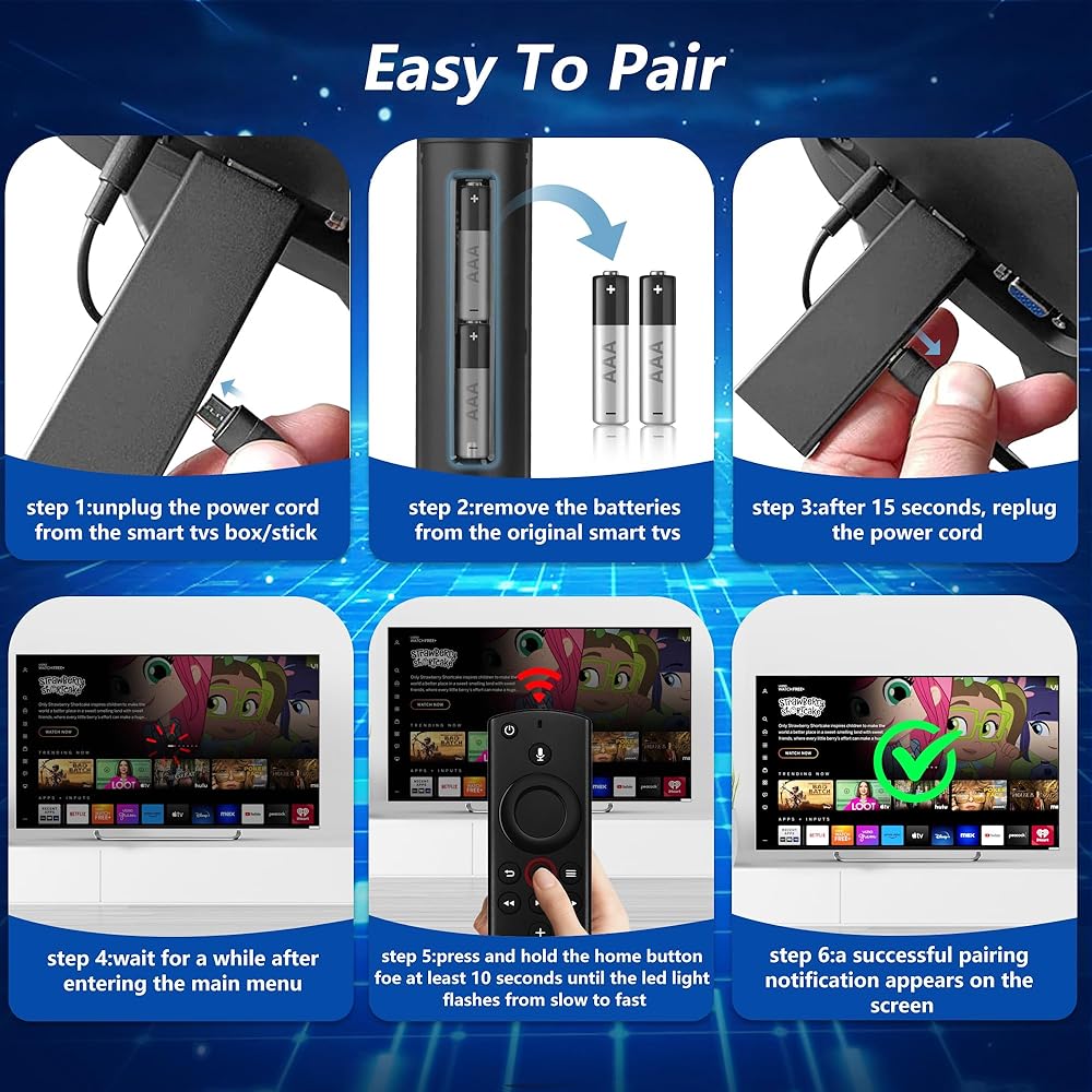 How To Pairing - Please note: Pairing this replacement voice remote stick before use. Press the Home button about 10-15 seconds until the led indicator starts to rapidly flash amber for 10 seconds, then your remote will automatically pair with your device
