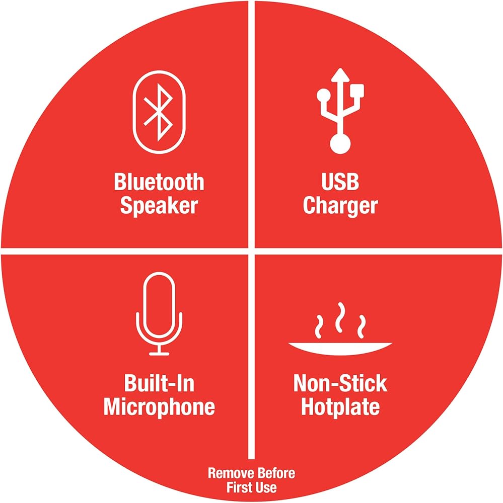 Mini non-stick hotplate to warm coffee, tea or cocoa hot in your home or office. Bluetooth speaker, USB charger, and built-in microphone to play music or take a phone call. Easily connects via Bluetooth technology. Great stocking stuffer and gift for anyone. Easy to use: simply plug in and flip the on/off switch. Non-slip and cools off quickly when turned off. Other fun USES: Keep snacks warm, melt candle or depilatory wax in a heat-safe dish. Cools quickly Easy wipe clean surface. Measures: 6. 95 x 4. 95 x 2. 45 inches, with 20 watt power. Etl listed, and 1 year limited . Continental Electric and professional Series, In the heart of every home.