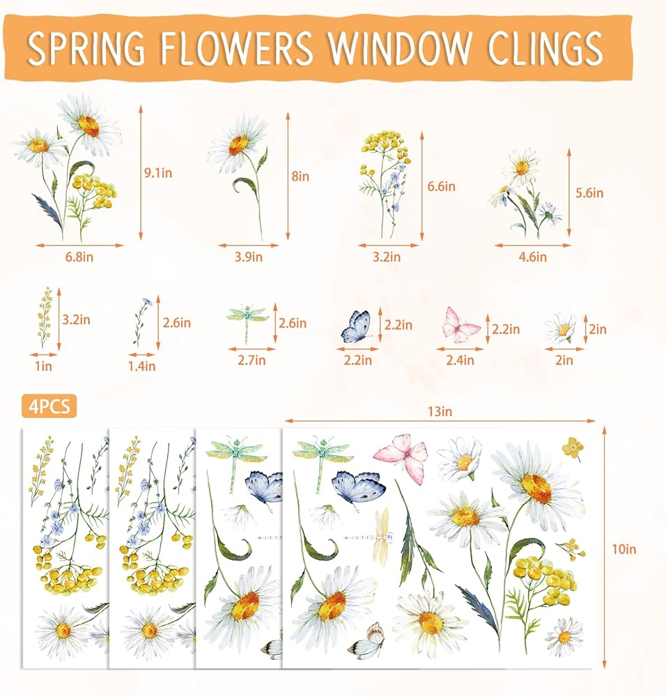 Wide Application: This spring and summer window sticker is perfect for spring and summer decoration on windows, glass, cabinet doors, mirrors, refrigerators and other smooth walls, your room will be full of life and vitality!