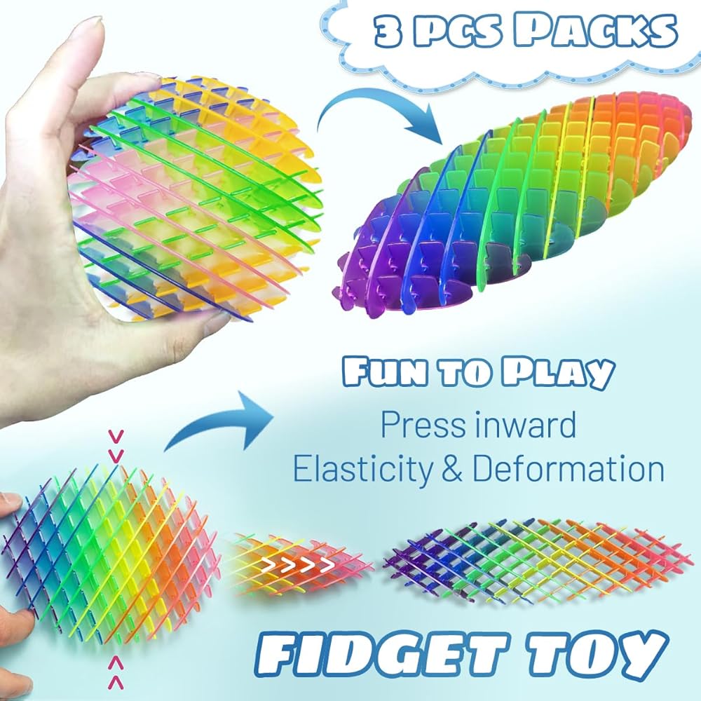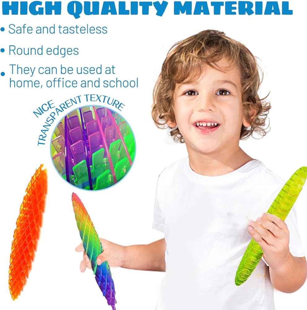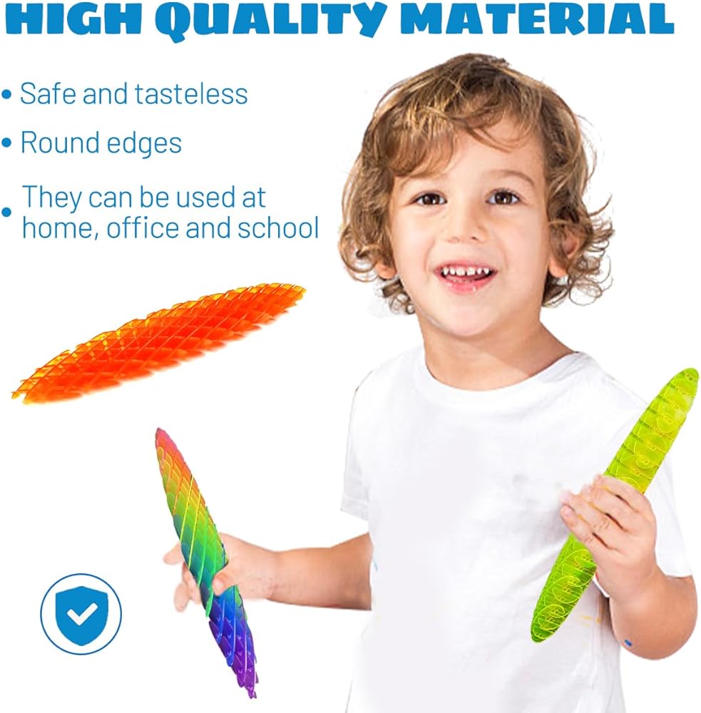 【Dynamic Stretch & Fidget Worm Toy】 This fidget worm toy can change from flat state to round state at will, and it will rebound automatically. It is fascinating This Fidget Toy offers a variety of sensory actions from stretching to bending and stretching to meet your various irritable needs.